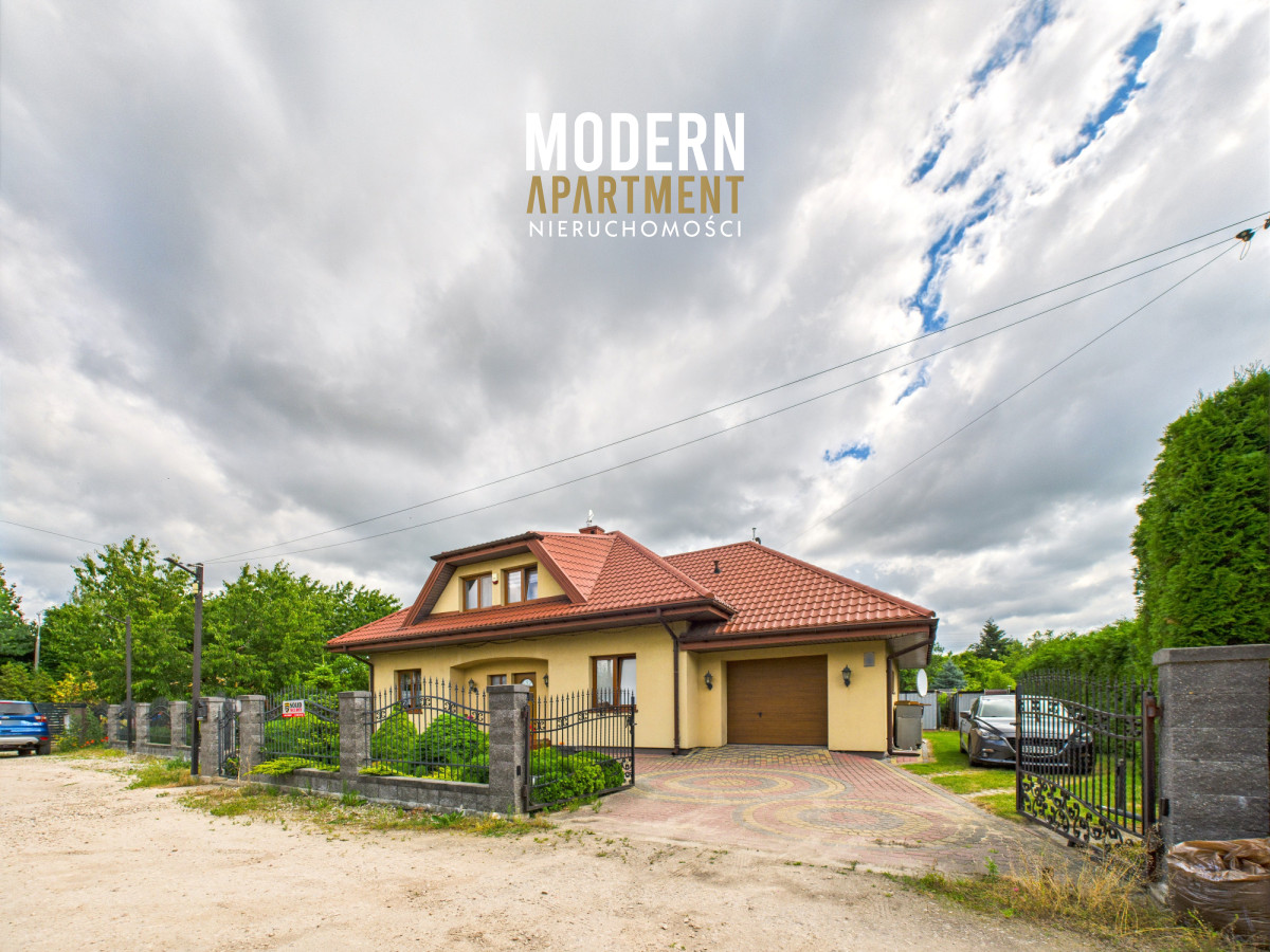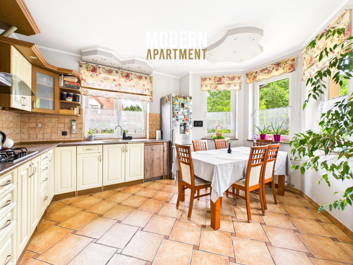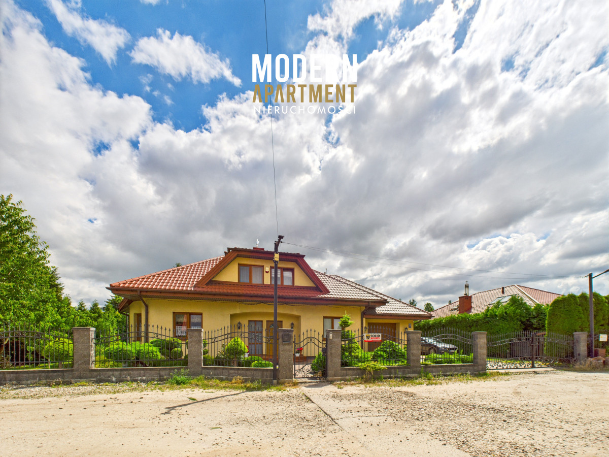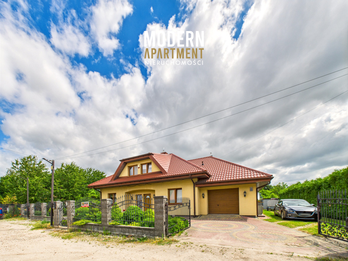 Dodatkowe informacje:Dom ogrzewany jest piecem gazowym, posiada wszystkie media miejskie: wodę, gaz oraz kanalizację. Kominek z płaszczem wodnym i rozprowadzeniem ciepła zapewnia dodatkowe źródło ogrzewania całego domu. Dach pokryty blachodachówką, okna PCV, na podłogach gres oraz panele. Dojazd do posesji prowadzi utwardzoną drogą gruntową, natomiast podjazd przy domu wyłożony jest kostką brukową. Nieruchomość wyposażona jest w instalację alarmową, wideodomofon oraz światłowód. Brama wjazdowa i garażowa sterowane pilotem. Na posesji znajdują się dwa garaże blaszane oraz betonowy grill.