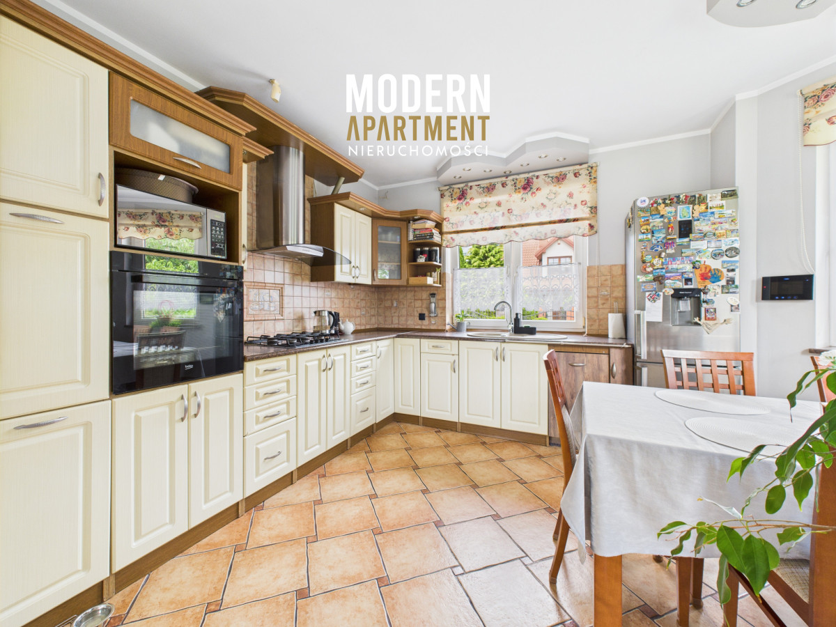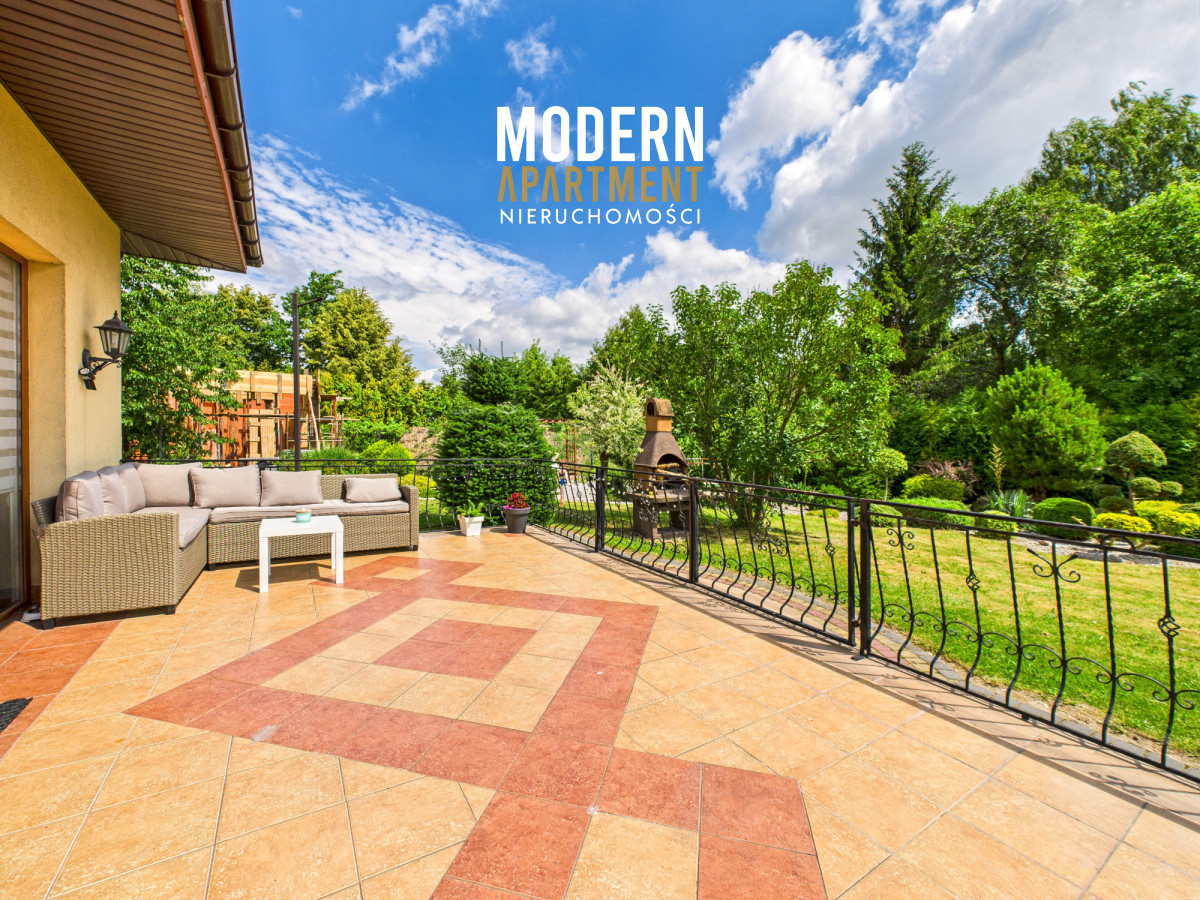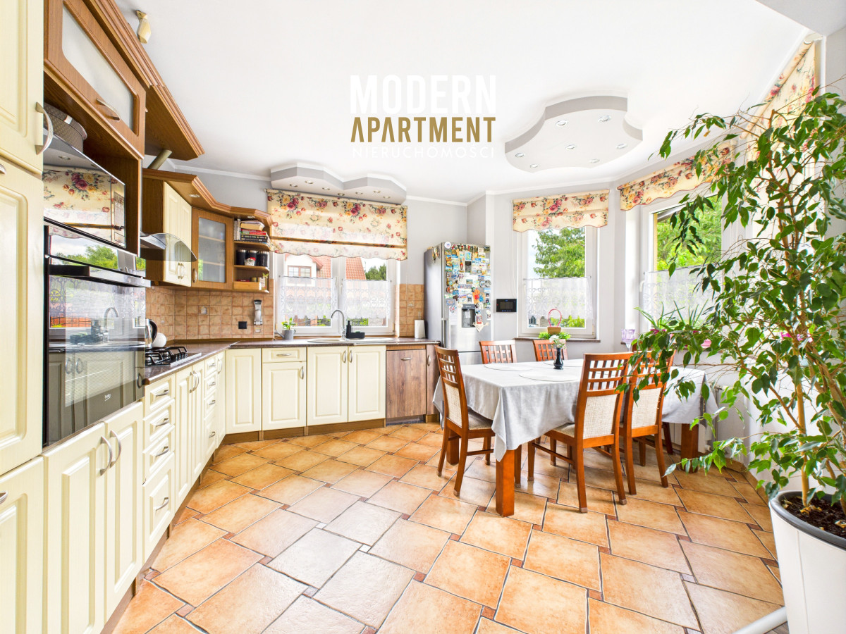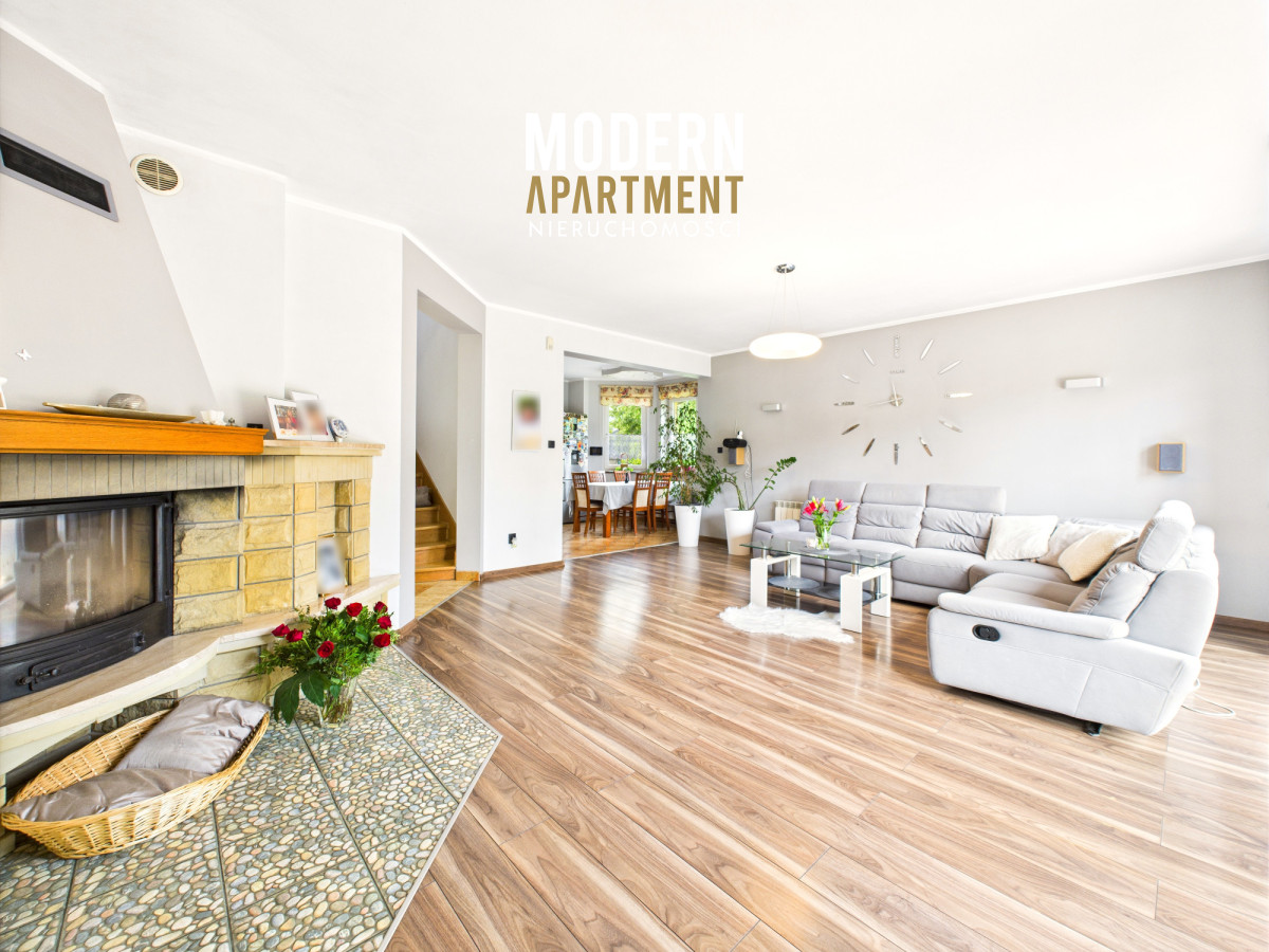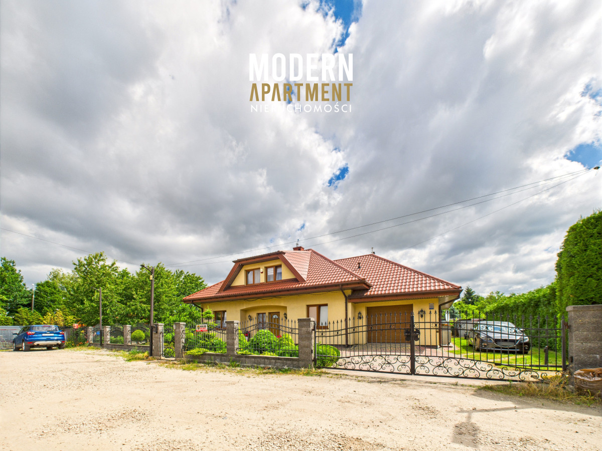 Dodatkowe informacje:Dom ogrzewany jest piecem gazowym, posiada wszystkie media miejskie: wodę, gaz oraz kanalizację. Kominek z płaszczem wodnym i rozprowadzeniem ciepła zapewnia dodatkowe źródło ogrzewania całego domu. Dach pokryty blachodachówką, okna PCV, na podłogach gres oraz panele. Dojazd do posesji prowadzi utwardzoną drogą gruntową, natomiast podjazd przy domu wyłożony jest kostką brukową. Nieruchomość wyposażona jest w instalację alarmową, wideodomofon oraz światłowód. Brama wjazdowa i garażowa sterowane pilotem. Na posesji znajdują się dwa garaże blaszane oraz betonowy grill.