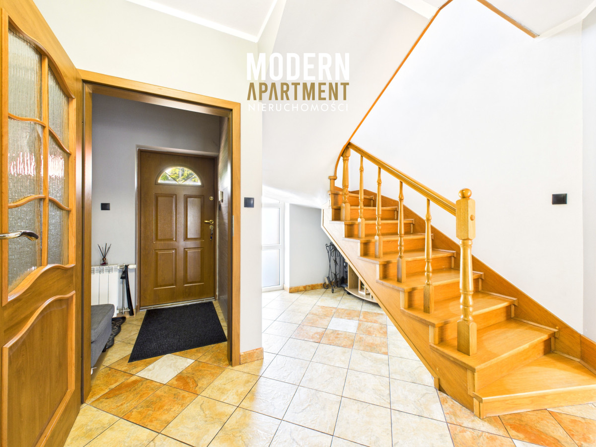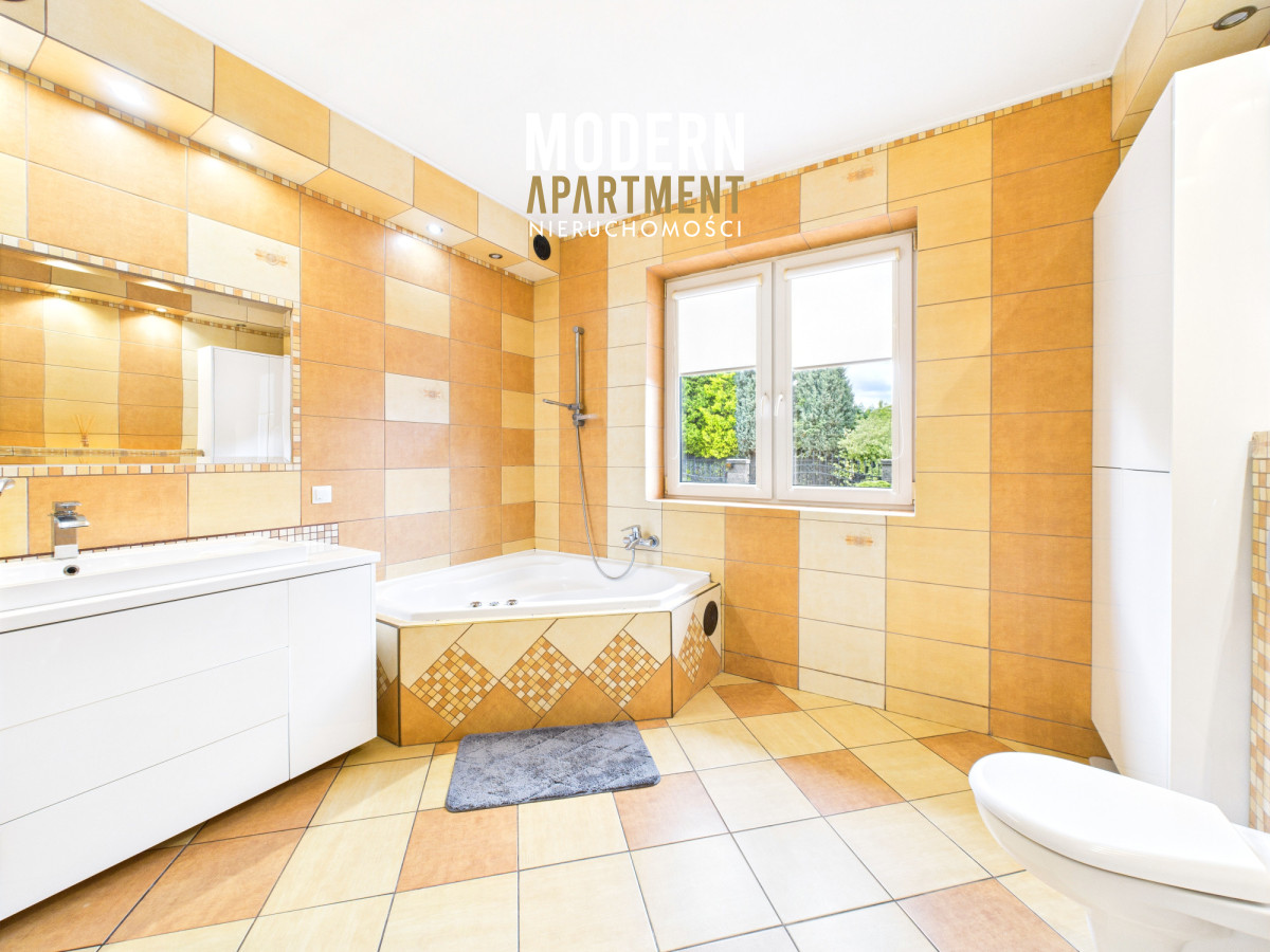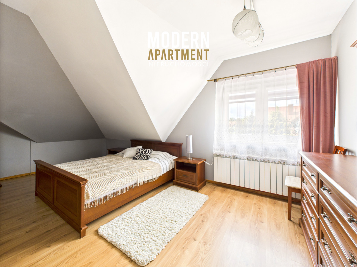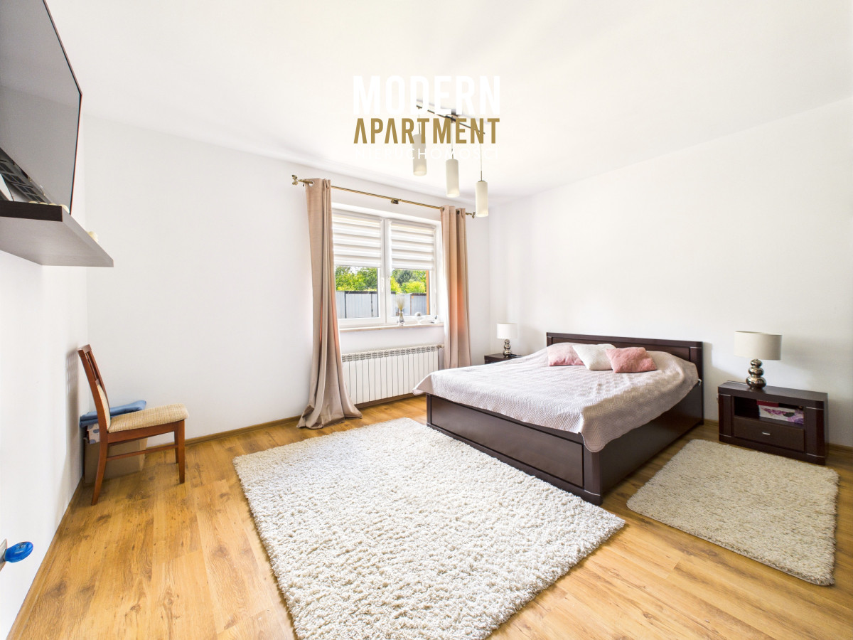 Dodatkowe informacje:Dom ogrzewany jest piecem gazowym, posiada wszystkie media miejskie: wodę, gaz oraz kanalizację. Kominek z płaszczem wodnym i rozprowadzeniem ciepła zapewnia dodatkowe źródło ogrzewania całego domu. Dach pokryty blachodachówką, okna PCV, na podłogach gres oraz panele. Dojazd do posesji prowadzi utwardzoną drogą gruntową, natomiast podjazd przy domu wyłożony jest kostką brukową. Nieruchomość wyposażona jest w instalację alarmową, wideodomofon oraz światłowód. Brama wjazdowa i garażowa sterowane pilotem. Na posesji znajdują się dwa garaże blaszane oraz betonowy grill.