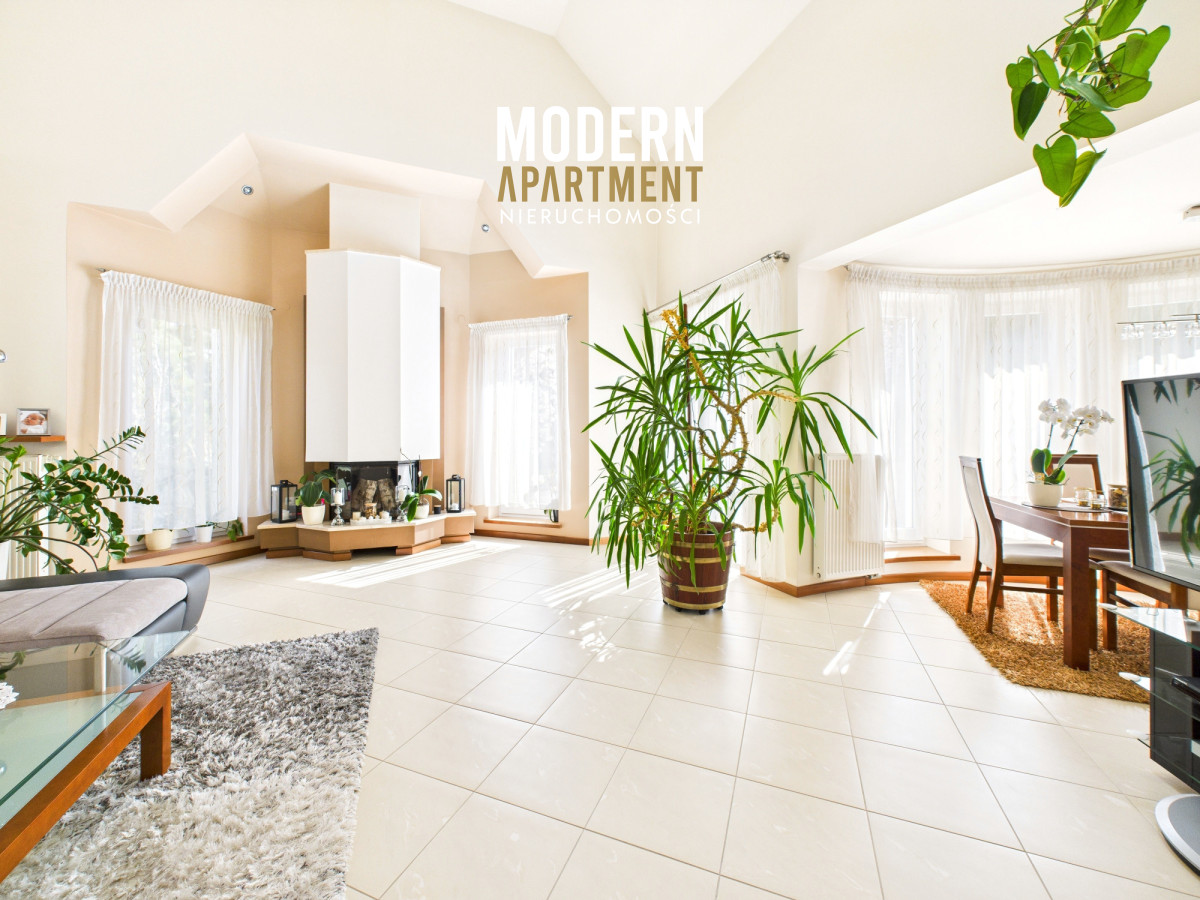 - przestronny salon z kominkiem i wyjściem na taras oraz ogród