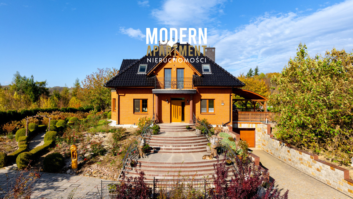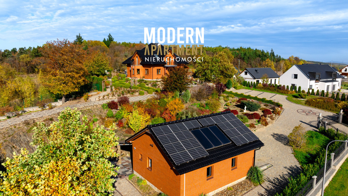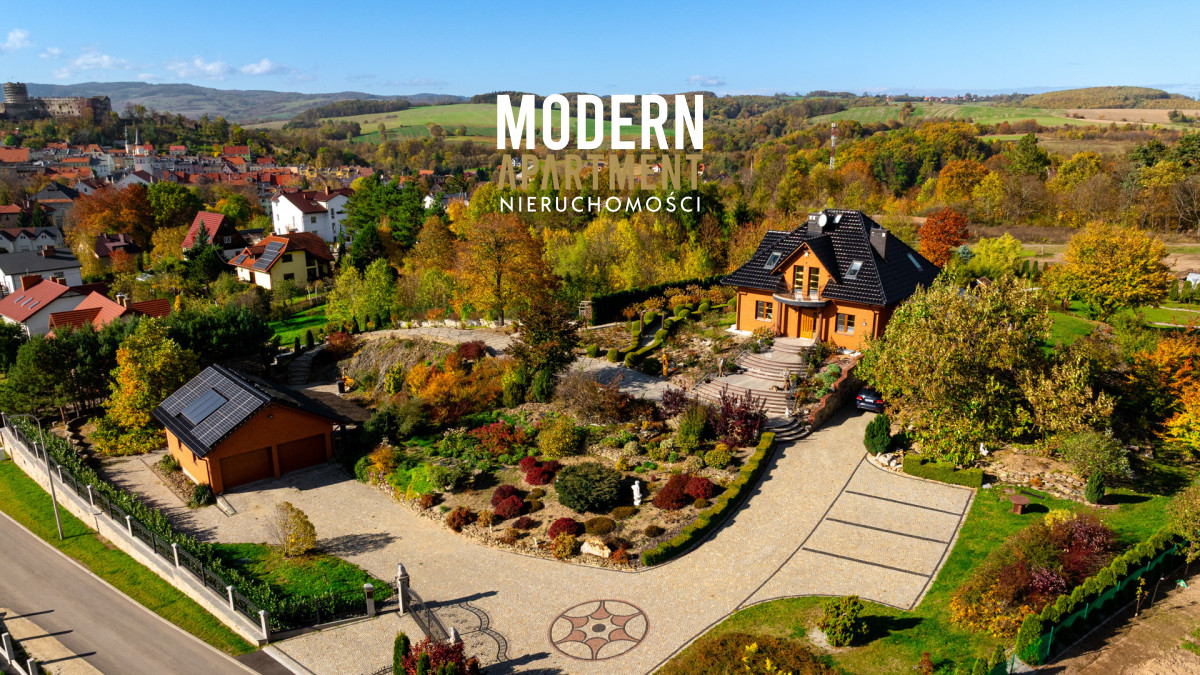 Oferujemy na sprzedaż bezpieczną, energooszczędną willę z dużym, wielopoziomowym ogrodem i panoramicznym widokiem na okoliczne lasy i zamek Bolków.NIERUCHOMOŚĆ:Dom wybudowany w 2010 roku z dużą dbałością o detale i energooszczędność z wykorzystaniem wysokiej klasy materiałów. Na parterze znajduje się przestronny, otwarty salon z kominkiem i wyjściem na słoneczny taras. Dobrze wyposażona kuchnia z wyspą i sprzętem najwyższej klasy, dodatkowo gabinet i łazienka. Na pierwszym piętrze przestronne 3 sypialnie, łazienka i wejście na antresolę. W piwnicy strefa rekreacyjna z barem, garderoba, łazienka, oraz część gospodarcza z garażem, pralnią i niesamowitą spiżarnią wykutą w skale, utrzymującą stałą temperaturę i wilgotność powietrza- miejsce idealne na piwniczkę na wina. Do domu prowadzą duże, reprezentacyjne schody wykonane z płyt granitowych. Na terenie posesji znajduje się garaż wolnostojący 140 m2 z dwoma miejscami postojowymi, kuchnią, łazienką i piętrem do zagospodarowania. Zadaszone miejsce do grillowania z kamiennym, dużym stołem i murowanym grillem. Cały ogród pięknie zaprojektowany i zadbany, z licznymi zakątkami, ścieżkami granitowymi, zarybionym oczkiem wodnym i wydzielonymi strefami - sadem, ogrodem warzywnym, częściami rekreacyjnymi, w tym placem zabaw dla dzieci.
