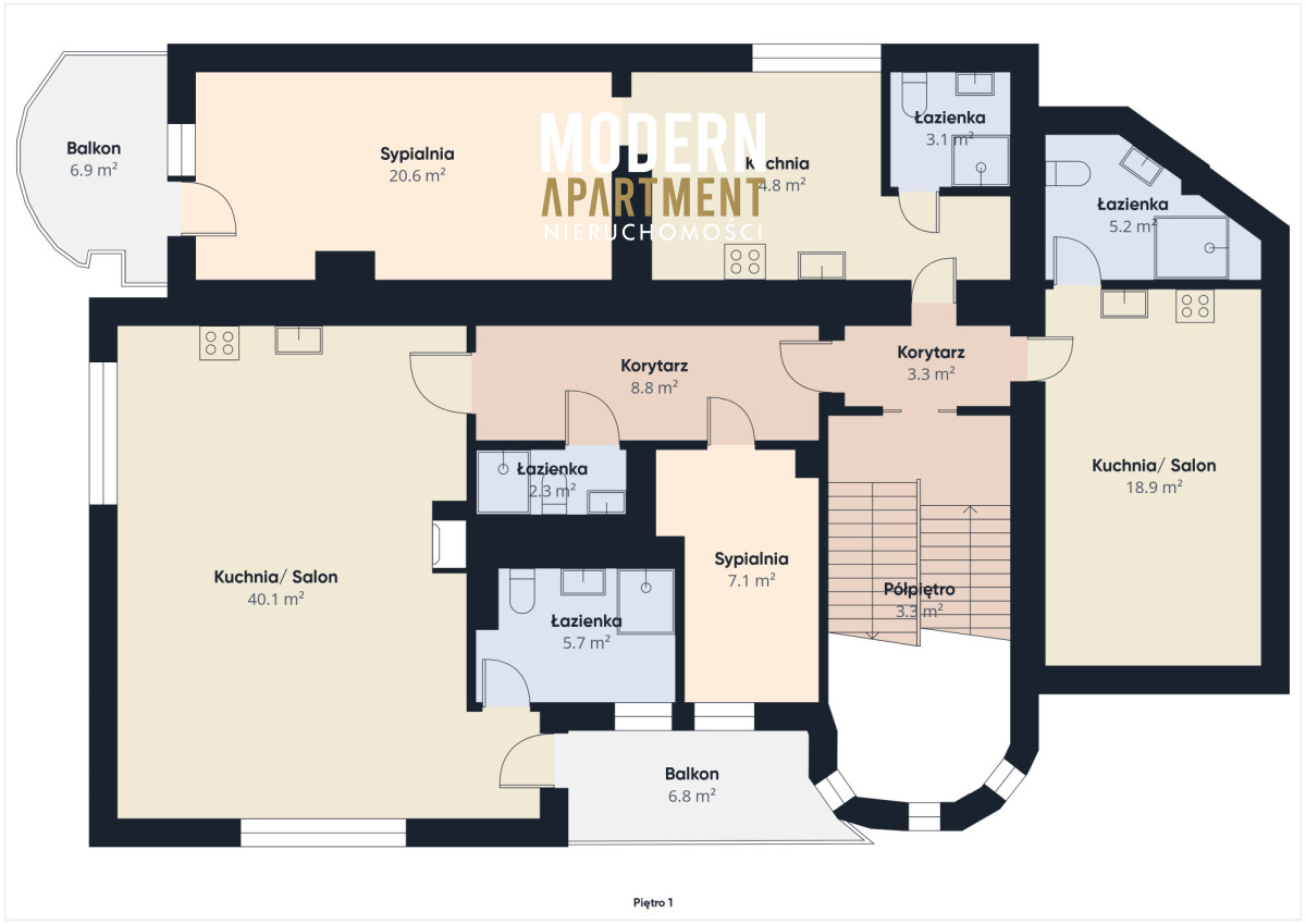 - apartament 4: 38,5m2 oraz balkon 7m2,