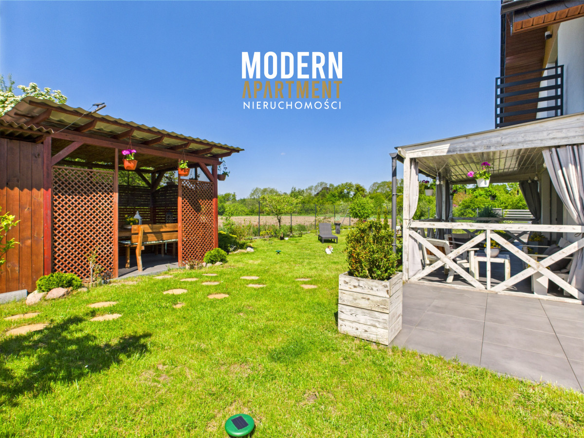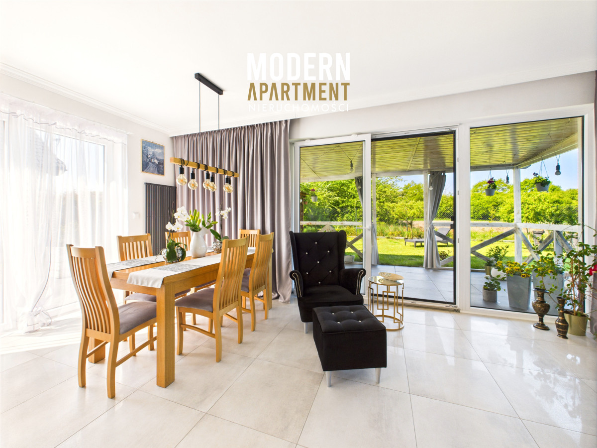 Komfortowy dom z pięknym tarasem i zadbanym ogrodem. Położony w miejscowości Łapino, z doskonałym dojazdem( 15 min dzięki bliskości Obwodnicy Metropolitalnej )do centrum Gdańska! I zaledwie 200m od Jeziora Łapińskiego. Ta dopieszczona w każdym calu nieruchomość nie może przejść Twojej uwadze.