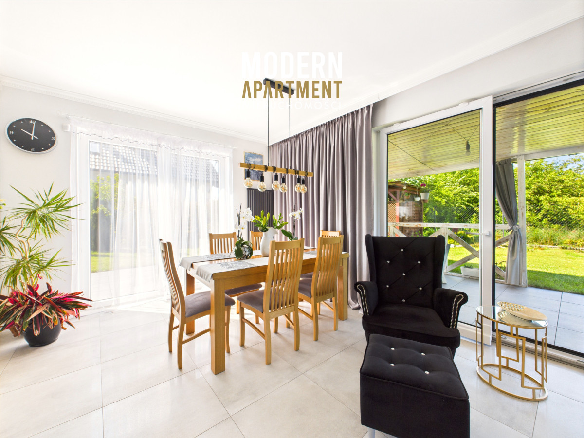 Z salonu wyjdą Państwo na pięknie umeblowany taras oraz zadbany ogród.