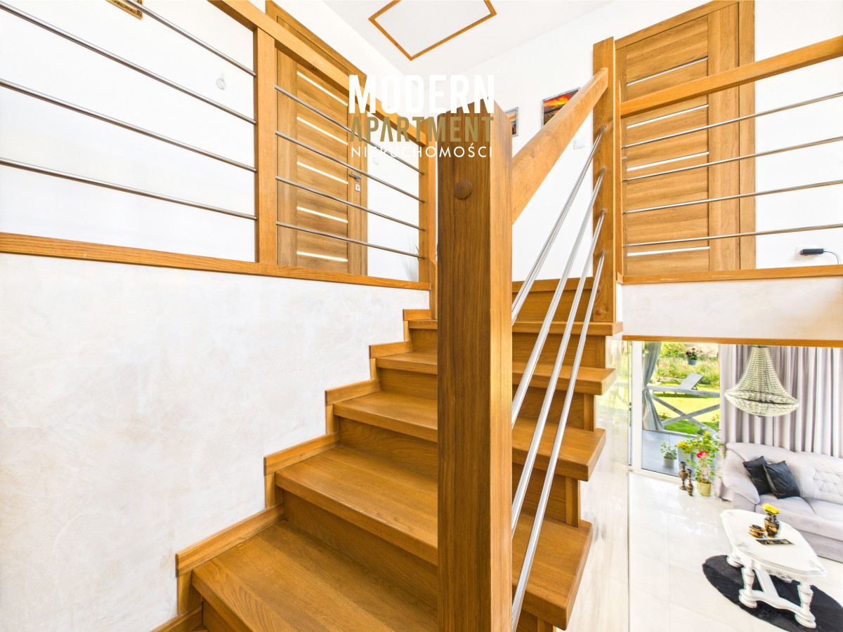 zadaszona altana oraz drewutnia. Oprócz pięknego, zadaszonego tarasu z wyjściem z salonu, z boku budynku jest miejsce zagospodarowane pod drugi taras lub np. jacuzzi.