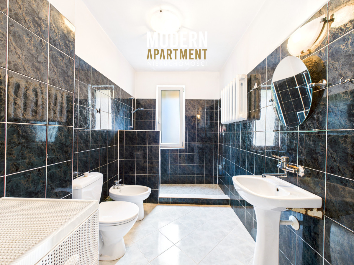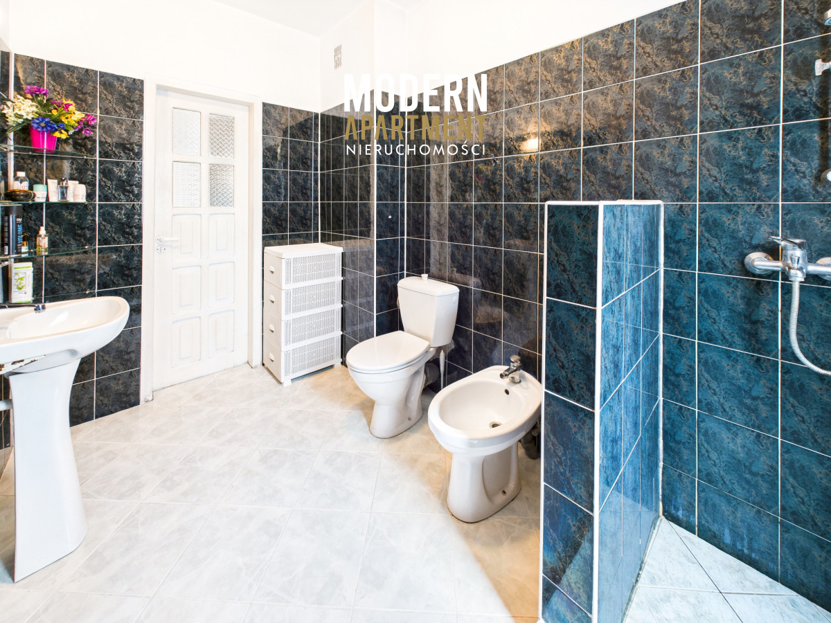 i doskonale sprawdza się jako przestrzeń pod działalność gospodarczą. Piętro budynku, będące lustrzanym odbiciem parteru, również jest wynajmowane, co zapewnia stały dochód pasywny. Różnicą w układzie jest łazienka z wanną oraz fakt, że salon na piętrze został zaadaptowany na dwie przestronne sypialnie