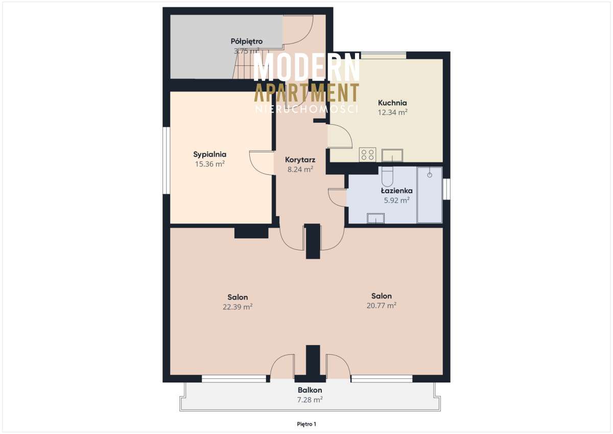 - dwa pokoje z wyjściem na balkon