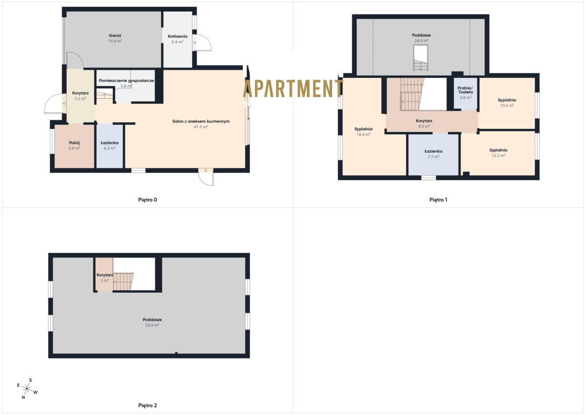UKŁAD FUNCKJONALNY:Dom posiada trzy poziomy, parter, piętro oraz poddasze.