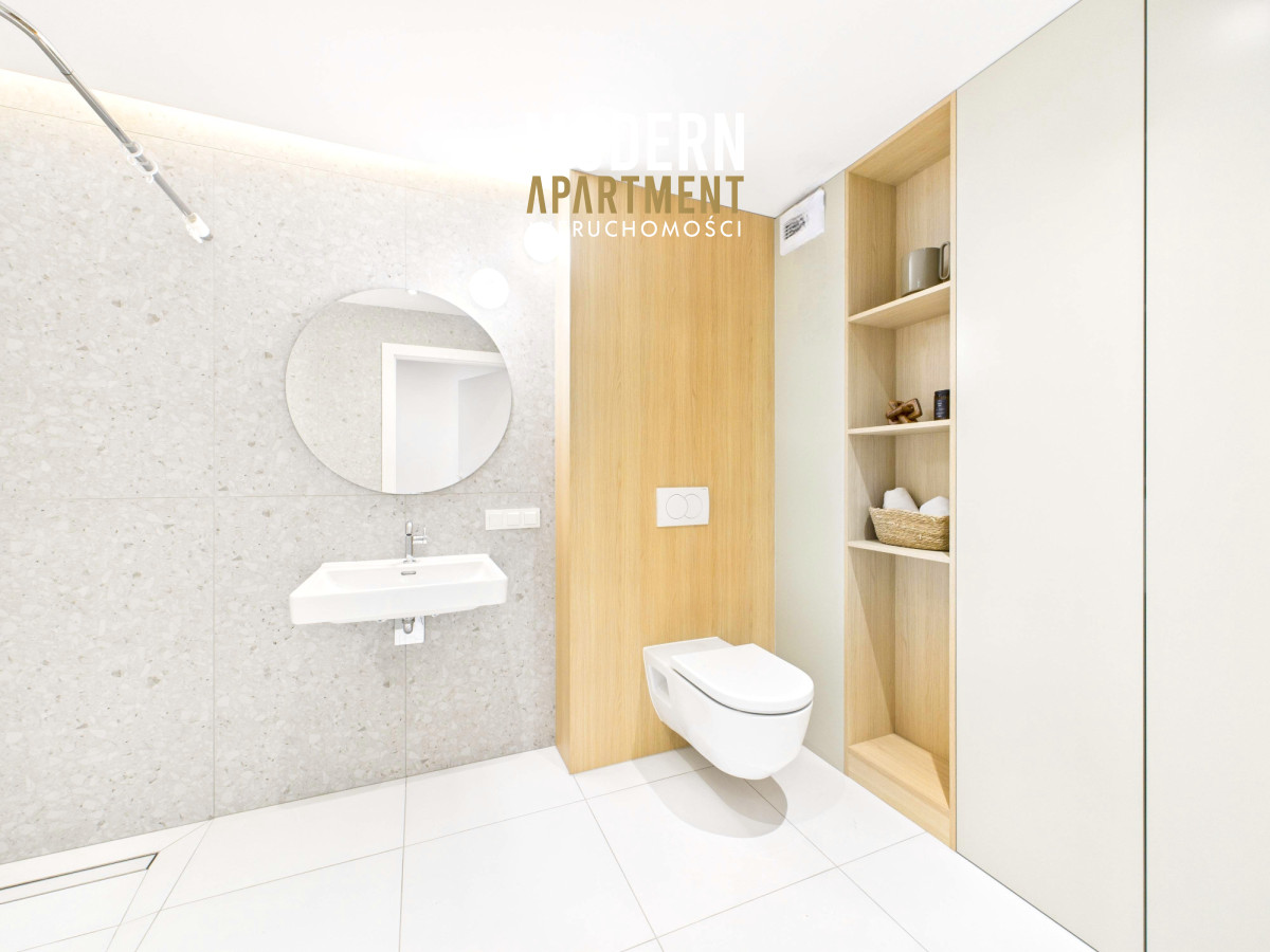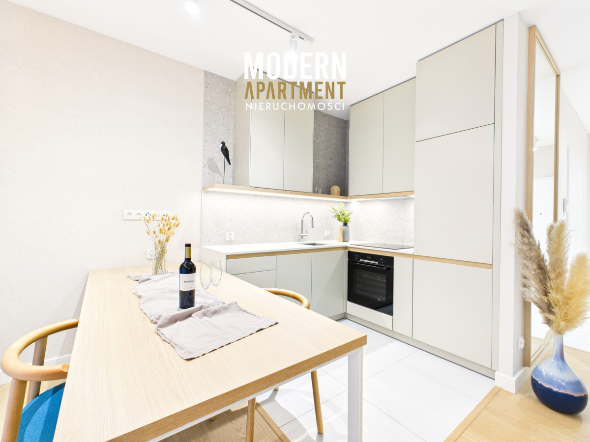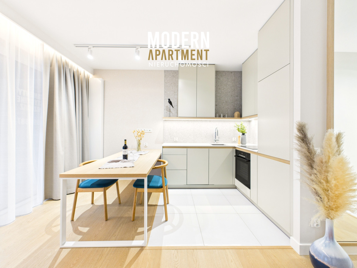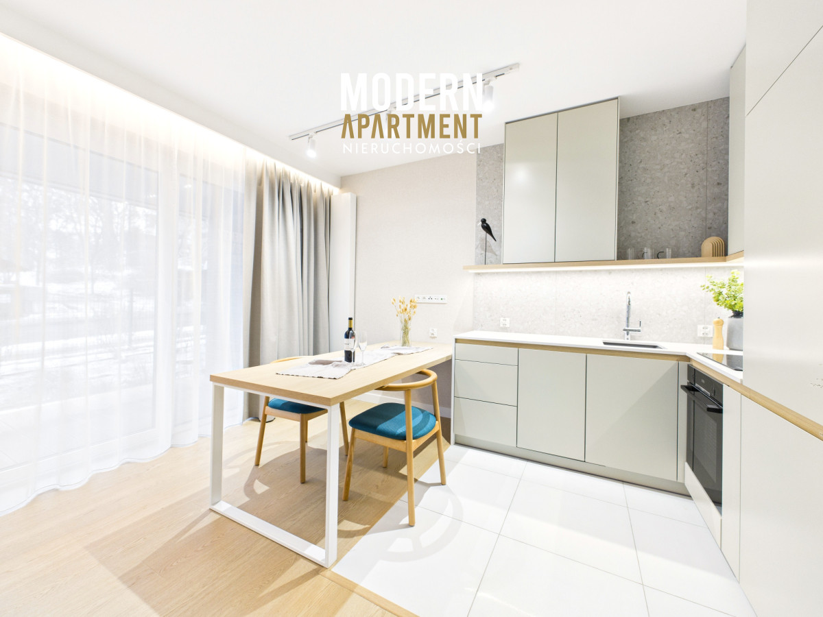 przystosowany dla osób z niepełnosprawnościami. Apartament jest kompletnie wyposażony w meble na wymiar, nowoczesny sprzęt AGD oraz eleganckie wykończenia, które łączą funkcjonalność z ponadczasową estetyką. Dzięki przemyślanej aranżacji wnętrz oraz zastosowaniu wysokiej jakości materiałów, apartament emanuje elegancją, komfortem i przytulnością. Gotowy do natychmiastowego zamieszkania lub wynajmu. Monitoring zewnętrzny, w częściach wspólnych oraz garażu i holach wejściowych, zapewni właścicielom poczucie bezpieczeństwa. Budynek został harmonijnie wkomponowany w otaczającą zieleń, oferując ustronną strefę rekreacyjną - idealne miejsce do relaksu z dala od miejskiego zgiełku.