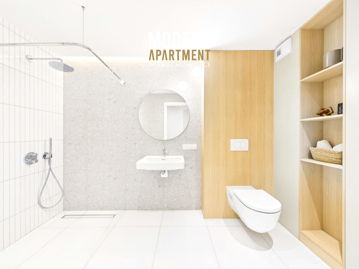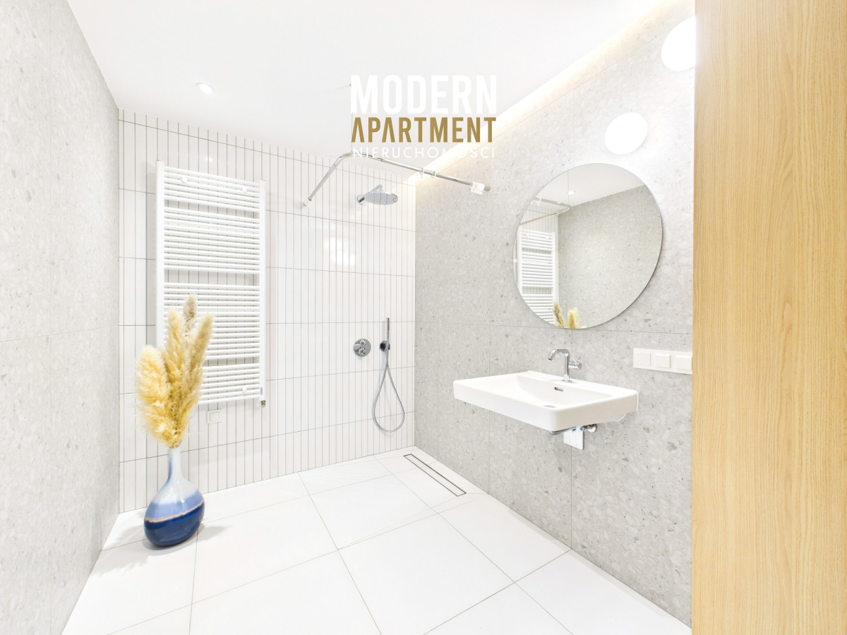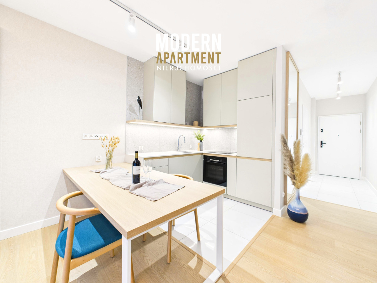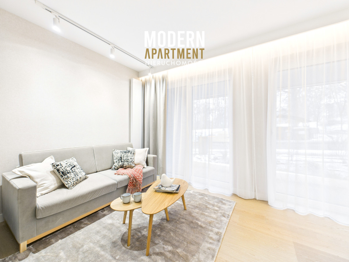 przystosowany dla osób z niepełnosprawnościami. Apartament jest kompletnie wyposażony w meble na wymiar, nowoczesny sprzęt AGD oraz eleganckie wykończenia, które łączą funkcjonalność z ponadczasową estetyką. Dzięki przemyślanej aranżacji wnętrz oraz zastosowaniu wysokiej jakości materiałów, apartament emanuje elegancją, komfortem i przytulnością. Gotowy do natychmiastowego zamieszkania lub wynajmu. Monitoring zewnętrzny, w częściach wspólnych oraz garażu i holach wejściowych, zapewni właścicielom poczucie bezpieczeństwa. Budynek został harmonijnie wkomponowany w otaczającą zieleń, oferując ustronną strefę rekreacyjną - idealne miejsce do relaksu z dala od miejskiego zgiełku.