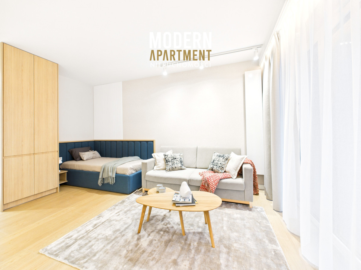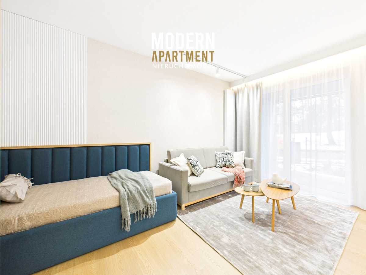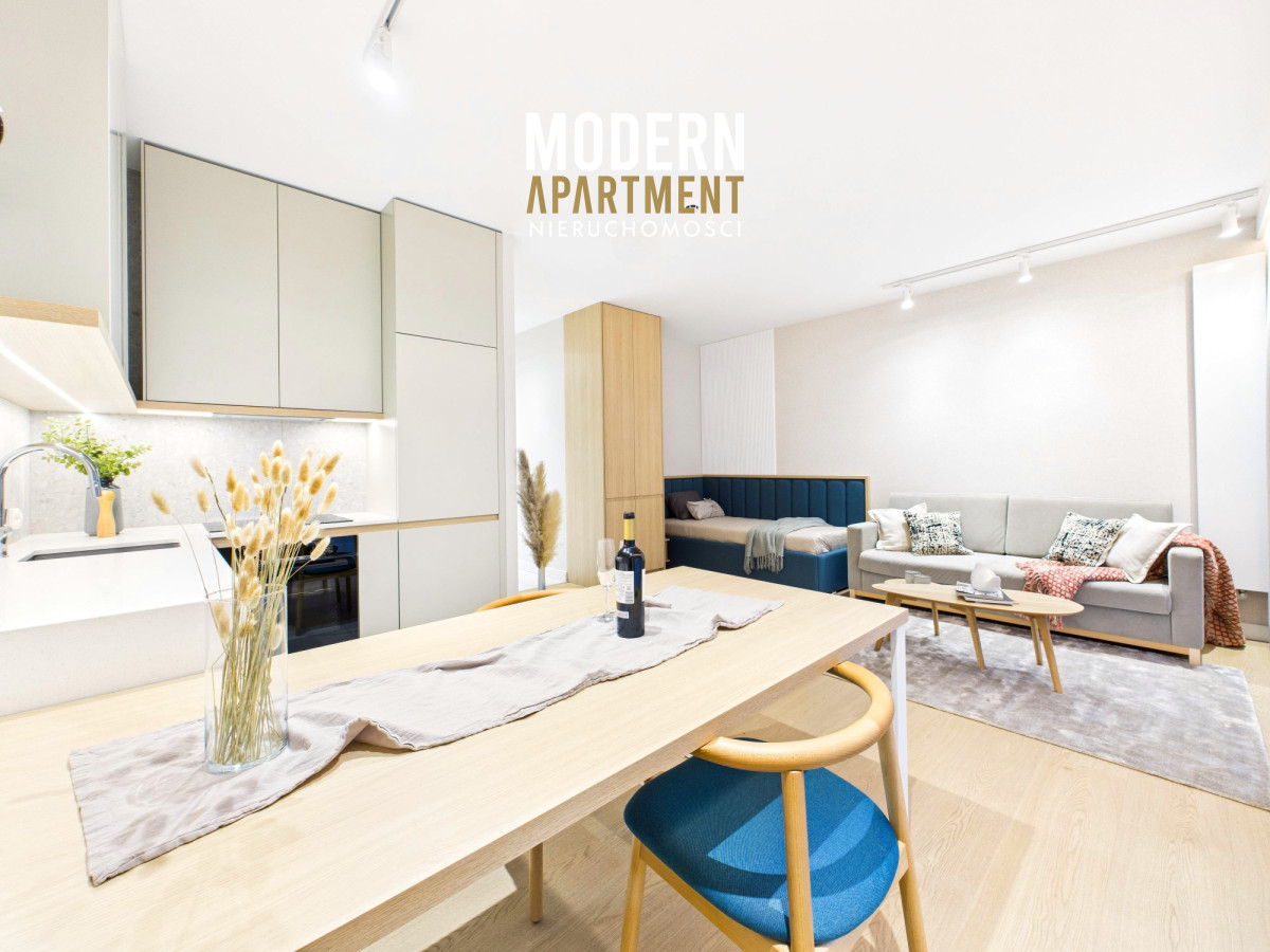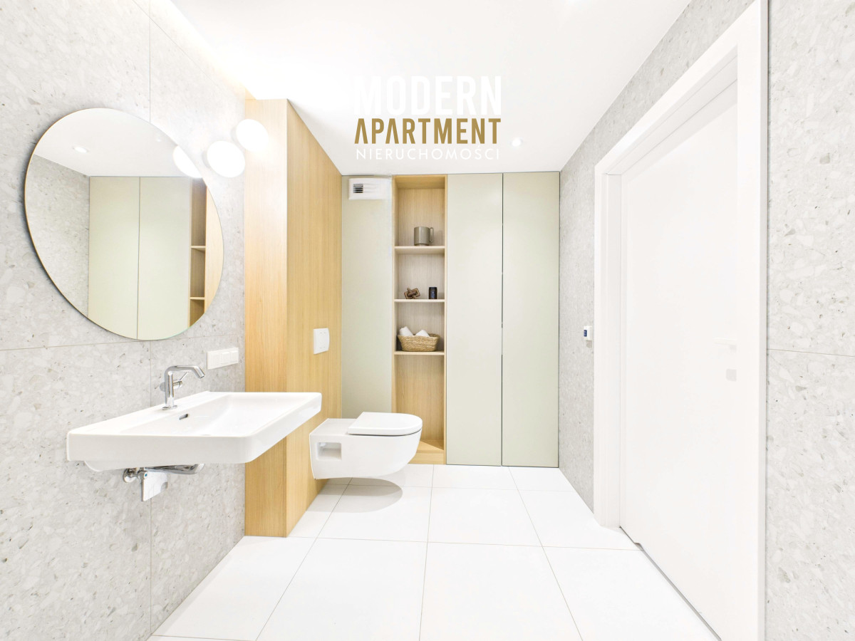 przystosowany dla osób z niepełnosprawnościami. Apartament jest kompletnie wyposażony w meble na wymiar, nowoczesny sprzęt AGD oraz eleganckie wykończenia, które łączą funkcjonalność z ponadczasową estetyką. Dzięki przemyślanej aranżacji wnętrz oraz zastosowaniu wysokiej jakości materiałów, apartament emanuje elegancją, komfortem i przytulnością. Gotowy do natychmiastowego zamieszkania lub wynajmu. Monitoring zewnętrzny, w częściach wspólnych oraz garażu i holach wejściowych, zapewni właścicielom poczucie bezpieczeństwa. Budynek został harmonijnie wkomponowany w otaczającą zieleń, oferując ustronną strefę rekreacyjną - idealne miejsce do relaksu z dala od miejskiego zgiełku.