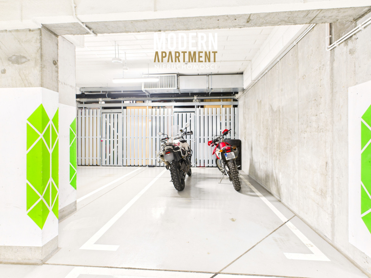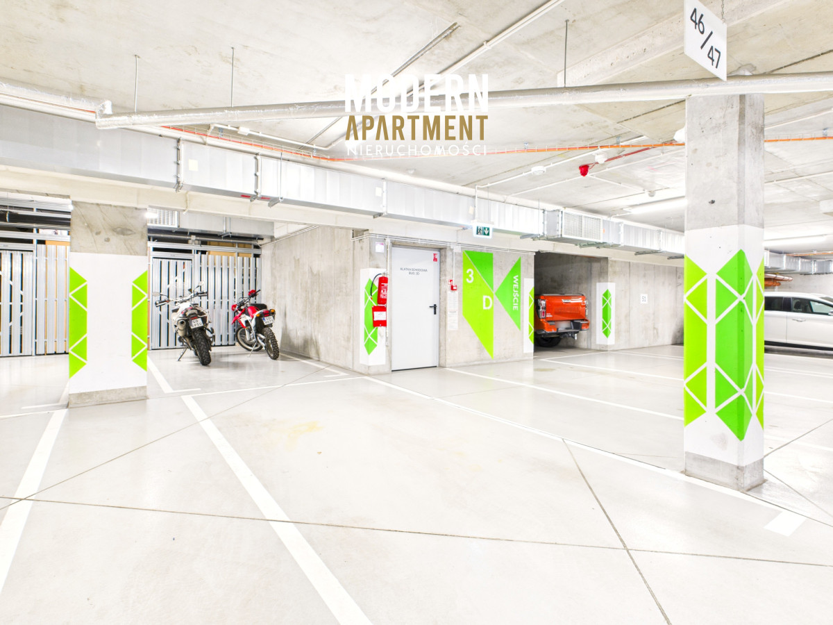 Do mieszkania przynależą dwa miejsca postojowe w hali garażowej (poziom -1), a także komórka lokatorska za dodatkową opłatą w wysokości 200 000 zł (zakup obligatoryjny).