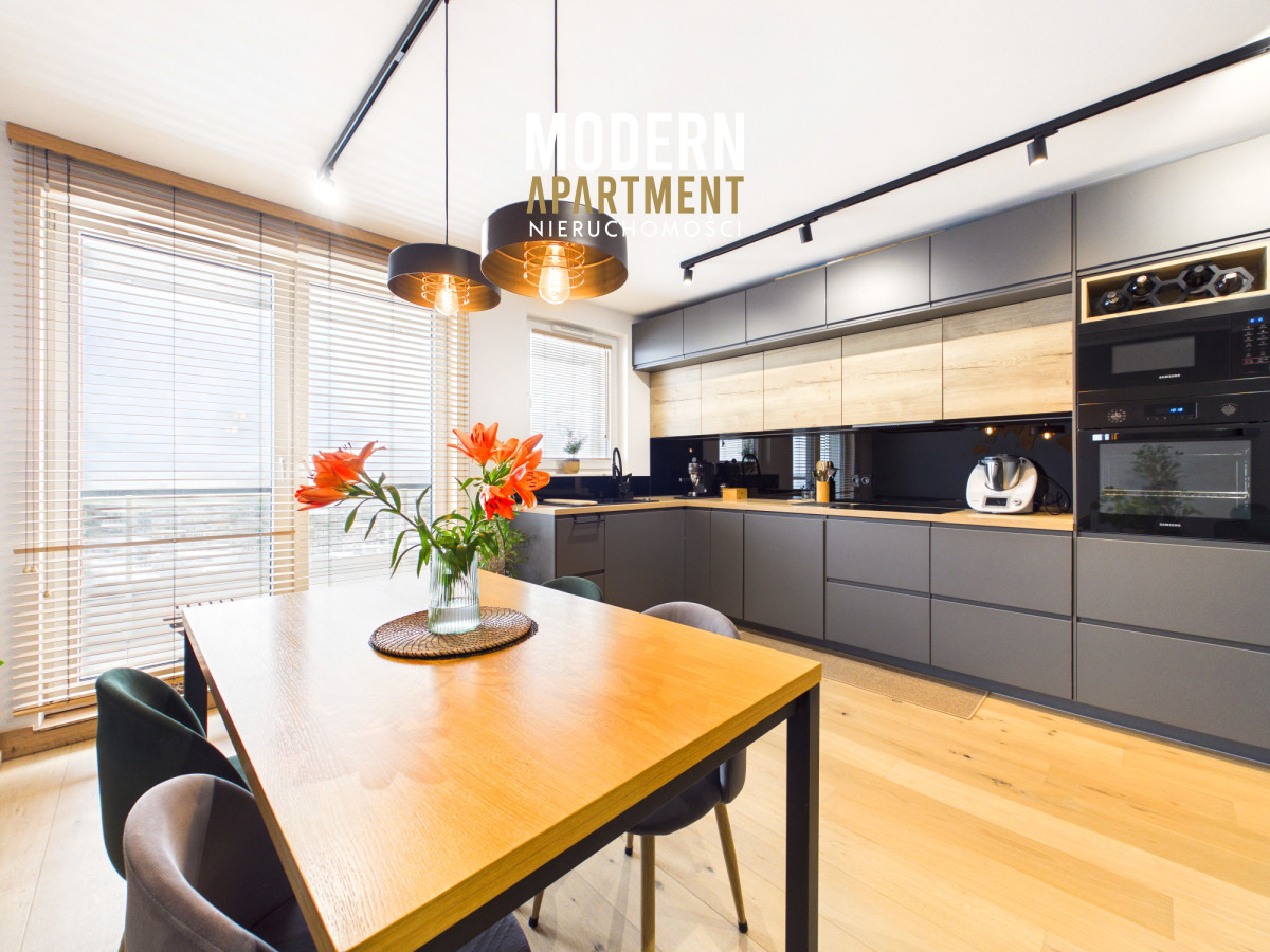 APARTAMENT:Prezentowany apartament o powierzchni 80 m2 zlokalizowany jest na 15 piętrze, rozpościera się z niego piękny panoramiczny widok na Zatokę Gdańską. Apartament jest w pełni umeblowany i wyposażony w niezbędny sprzęt AGD. W apartamencie zostały zamontowane liczne zabudowy oraz szafy wykonane przez stolarza, dzięki czemu przestrzeń została maksymalnie wykorzystana, a przechowywanie wszystkich rzeczy jest bardzo wygodne. Znajduje się w nim również piękna dębowa podłoga. Ekspozycja zachodnia gwarantuje piękne zachody słońca, które można podziwiać z dużego balkonu. Do mieszkania przynależą 2 miejsca parkingowe w hali garażowej oraz komórka lokatorska, znajdująca się bezpośrednio obok miejsc parkingowych (dodatkowo płatne). Inwestycja Spektrum to osiedle wybudowane w 2020 roku, tuż obok Parku Reagana. Inwestycję tworzą 17 - piętrowe budynki. Przy wejściach do budynków zlokalizowana jest recepcja wraz z ochroną, a całe osiedle jest monitorowane, dzięki czemu mieszkańcy mogą czuć się bezpiecznie. Na terenie osiedla znajdują się place zabaw, a także rekreacyjne wiaty do aktywnego spędzania wolnego czasu. Mieszkańcy mają również do dyspozycji rowerownię. Bezpośrednio przy budynku znajduje się pełna infrastruktura handlowo-usługowa.