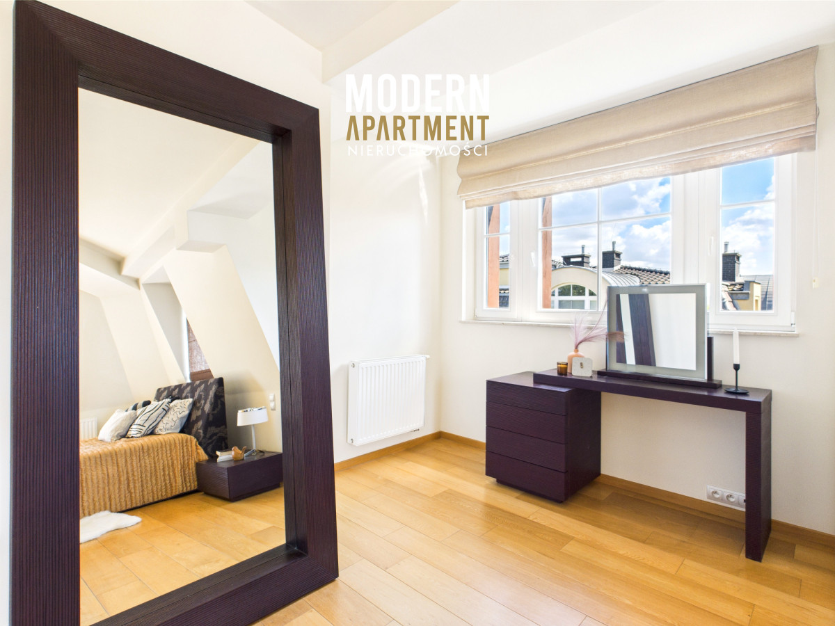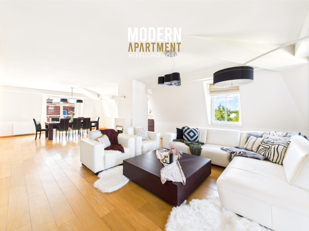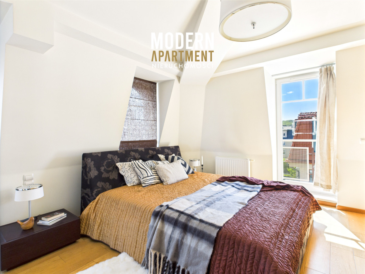 Prezentowany apartament o powierzchni 178 m², zajmuje całe ostatnie piętro prestiżowej inwestycji Kamieniczki Sopockie przy ul. Władysława Łokietka w Sopocie. Najważniejsze atuty to pełna prywatność, niesamowita przestrzeń starannie zaprojektowana, mnóstwo światła dzięki oknom wychodzącym na 3 strony świata oraz piękne widoki dostępne m.in. dzięki 6 balkonom. Apartament jest w całości wyposażony w wysokiej jakości meble oraz sprzęt AGD.