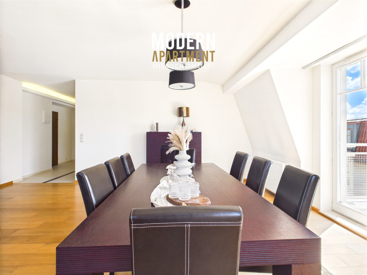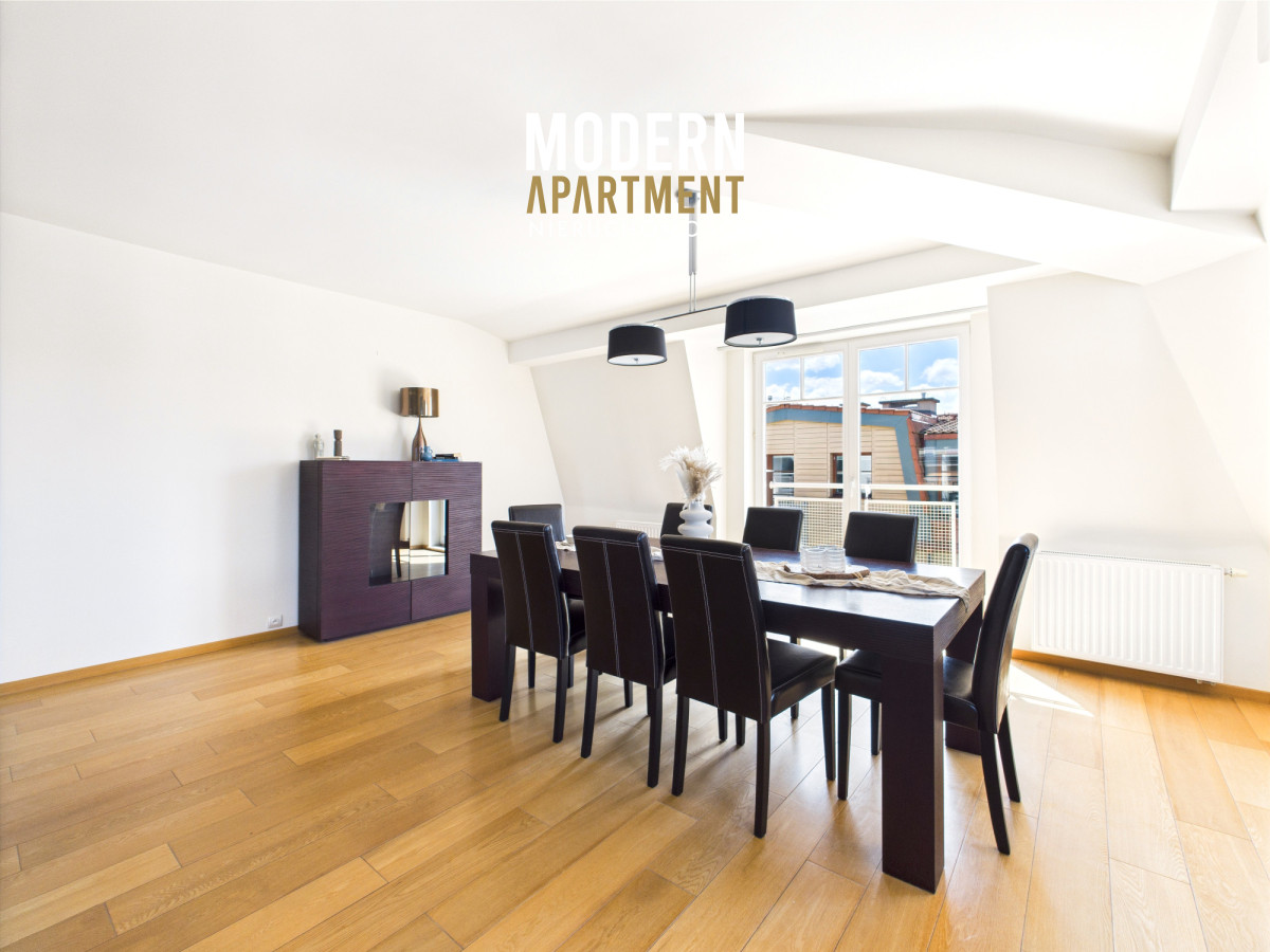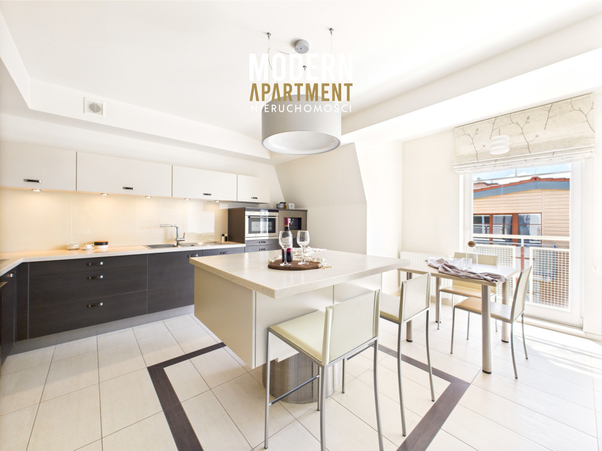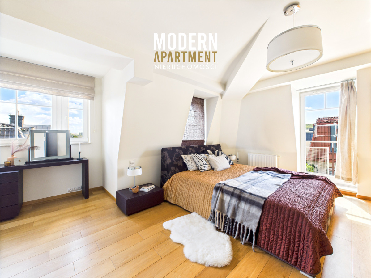 Prezentowany apartament o powierzchni 178 m², zajmuje całe ostatnie piętro prestiżowej inwestycji Kamieniczki Sopockie przy ul. Władysława Łokietka w Sopocie. Najważniejsze atuty to pełna prywatność, niesamowita przestrzeń starannie zaprojektowana, mnóstwo światła dzięki oknom wychodzącym na 3 strony świata oraz piękne widoki dostępne m.in. dzięki 6 balkonom. Apartament jest w całości wyposażony w wysokiej jakości meble oraz sprzęt AGD.
