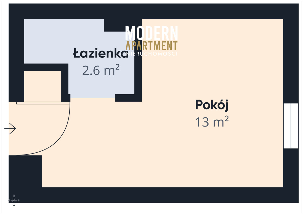 UKŁAD FUNKCJONALNY:Lokal o powierzchni 15,59 m² to doskonale rozplanowana, otwarta przestrzeń. Składa się z jasnego salonu z aneksem kuchennym (13,06 m²), funkcjonalnego przedpokoju oraz łazienki (2,53 m²) z miejscem na prysznic. Całość została zaprojektowana tak, aby maksymalnie wykorzystać każdy metr kwadratowy, zapewniając najemcy miejsce do wypoczynku, pracy oraz przechowywania.