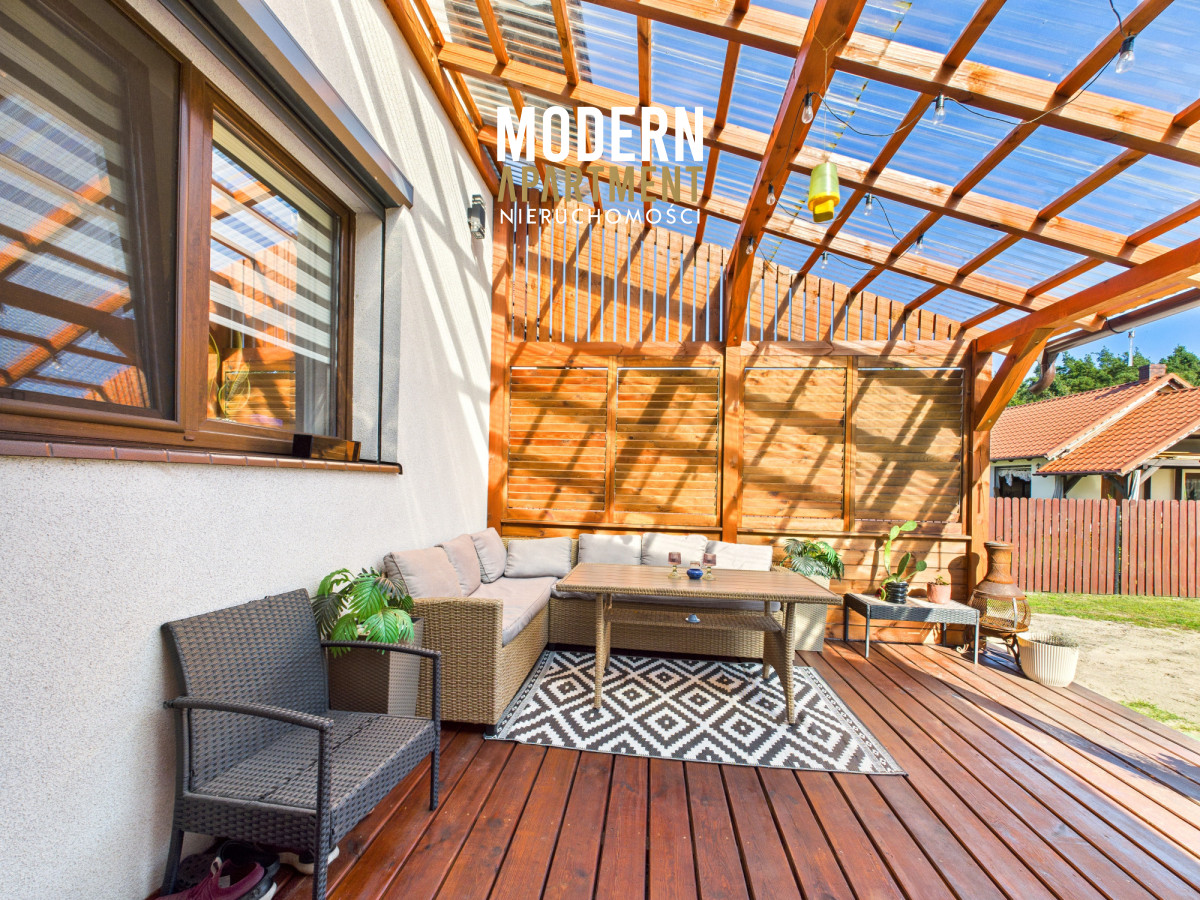 Na sprzedaż przytulny dom, wykończony pod klucz w Biskupcu, koło Nowego MIasta.NIERUCHOMOŚĆ:Dom o powierzchni 193m2 znajduje się na 900m2 działce o regularnym kształcie. Jest wykończony pod klucz i gotowy do zamieszkania. Został wyposażony w wiele udogodnień, w tym w pompę ciepła, ogrzewanie podłogowe, zewnętrzne rolety antywłamaniowe, światłowód i monitoring. Posesja jest w całości ogrodzona, wjazd przez bramę otwieraną pilotem. Na jej terenie oprócz domu znajduje się również podpiwniczony, jednopiętrowy budynek gospodarczy, który z powodzeniem może pełnić funkcję dodatkowej przestrzeni magazynowej, garażu lub być przeznaczony pod działalność gospodarczą.