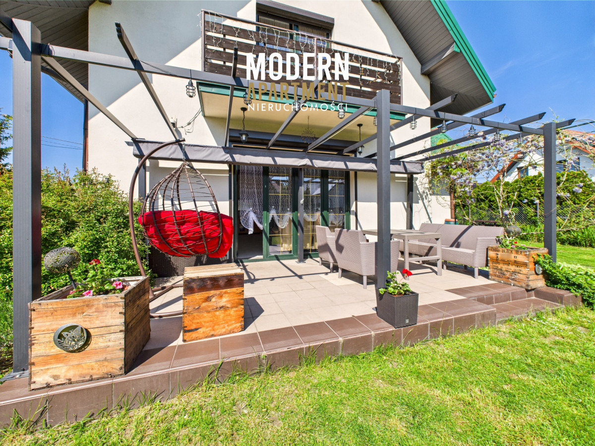 DODATKOWE INFORMACJE:Dom wyposażony jest w piec indukcyjny. Podłączenie do wody i kanalizacji miejskiej ze studzienka oraz pompą odpływową. Doprowadzony światłowód. Dach pokryty blachodachówką z zainstalowanymi panelami fotowoltaicznymi. Ogrzewanie domu jest elektryczne. Parter domu oraz łazienki mają rozprowadzone ogrzewanie podłogowe wodne. Natomiast w górnej części domu ciepło otrzymujemy poprzez grzejniki. Kominek z płaszczem wodnym, oraz rozprowadzeniem ciepła stanowi alternatywne źródło ogrzewania. Dom wyposażony jest w okna PCV z roletami przeciwwłamaniowymi. Na podłogach użyto dwa rodzaje materiałów: terakotę oraz panele. Schody oraz korytarz na piętrze są drewniane, pomalowane farbą do drewna. Dom zabezpieczony systemem alarmowym. Brama wjazdowa oraz do garażu otwierana automatycznie. Basen z grupą filtracyjną i robotem czyszczącym.
