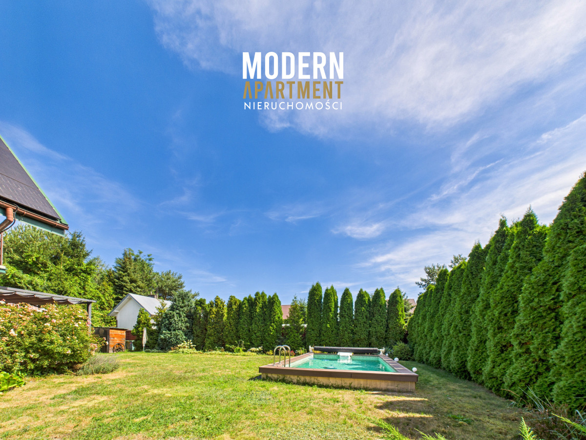 Na sprzedaż dom z basenem w cichej okolicy, ukryty w przepięknym ogrodzie, położony zaledwie 19 km od planowanej stacji linii metra M2 "Karolin" w Warszawie. Zapraszamy do poznania prezentowanej nieruchomości podczas spaceru 3D.DOM:Na sprzedaż dom o powierzchni całkowitej 208 m² znajdujący się w Błoniu, położony na zadbanej działce o powierzchni 854 m². Na parterze z przedsionka z zabudową na wymiar szafą przechodzimy do korytarza, który prowadzi nas do tej części domu, gdzie w pięknie doświetlonej strefie znajduje się jadalnia, połączona z kuchnią. Przechodząc przez nią, mamy ukryte pomieszczenie spełniające funkcję pomieszczenia gospodarczego oraz pralni. Mijając strefę jadalnianą wchodzimy do równie jasnego i przestronnego salonu z klimatycznym kominkiem, z bezpośrednim wyjściem na taras oraz do ogrodu. To tam poza poranną kawą na tarasie oraz otaczającą nas zielenią czeka na miejsce zabawy, relaksu oraz ochłody w letnie, upalne dni czyli basen. Basen o wymiarach 300 cm x 600 cm w ciepłe wieczory nabiera klimatu domowego SPA dzięki kolorowemu podświetleniu. Wracając do środka domu na półpiętrze znajdziemy pokój, który obecnie stanowi strefę relaksu dzięki obecności stołu do tenisa stołowego. Pokój ten jest na tyle duży, że bez problemu może spełniać funkcję kolejnej sypialni lub gabinetu. Z kolei na piętrze znajdują się dwie ustawne sypialnie z balkonem, z czego jedna z nich za lustrzanymi, przesuwnymi drzwiami kryje ogromną garderobę. Ponad to mamy łazienkę - pokój kąpielowy z dużą wanną, przestronnym prysznicem, umywalką oraz wc i bidetem. Rewelacyjna ekspozycja światła sprawia, że dom jest pełen naturalnego światła o każdej porze dnia.