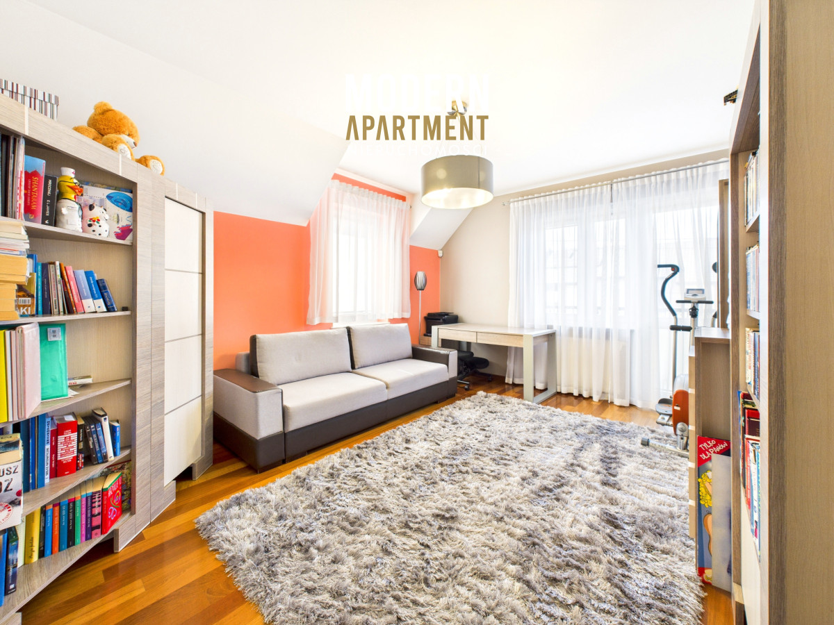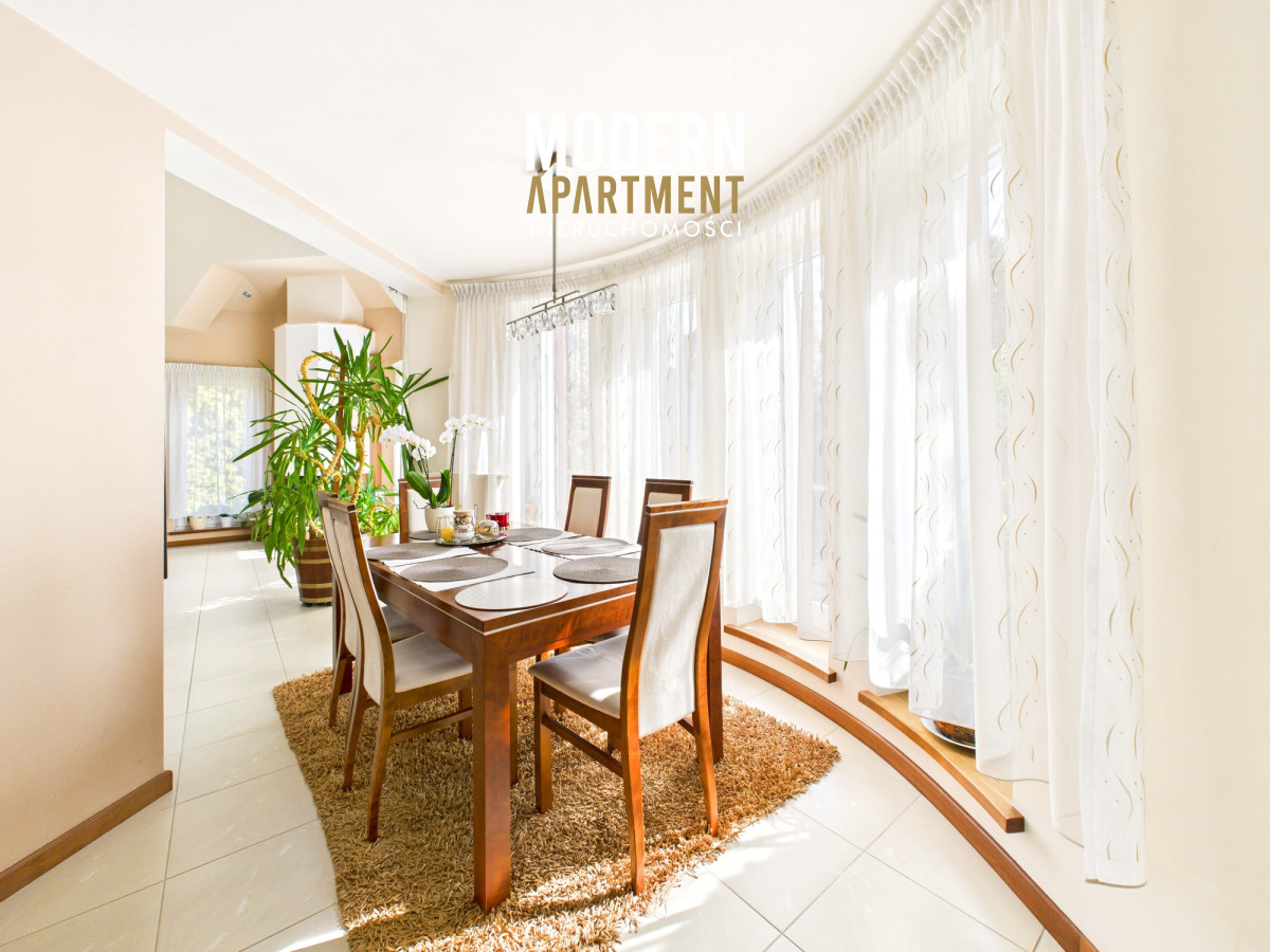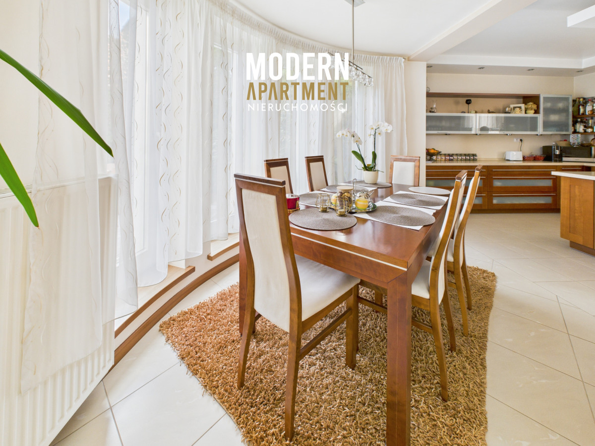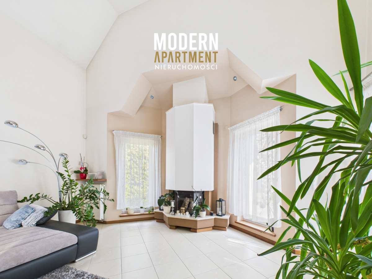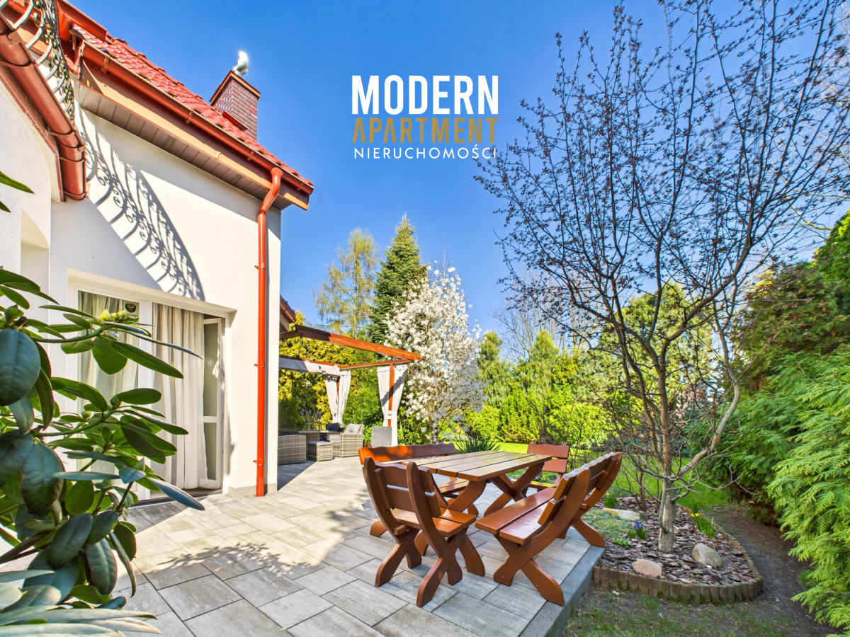 wypełniają wnętrze naturalnym światłem i nadają mu wyjątkowego charakteru. Z salonu można wyjść na taras i przepięknego ogrodu, w którym znajduje się strefa relaksu z pergolą i zadaszeniem - idealne miejsce na poranną kawę lub wieczorny odpoczynek. Piętro stanowi prywatną strefę dla domowników. Na górze antresola obecnie jest zaaranżowana jako zielony wewnętrzny ogród - naturalny system oczyszczania powietrza w domu. Trzy przestronne sypialnie z wyjściem na własny balkon każda, oddzielna garderoba, a także duża łazienka z wanną, podwójną umywalką, WC i bidetem - wszystko to tworzy komfortową, intymną przestrzeń dla domowników.