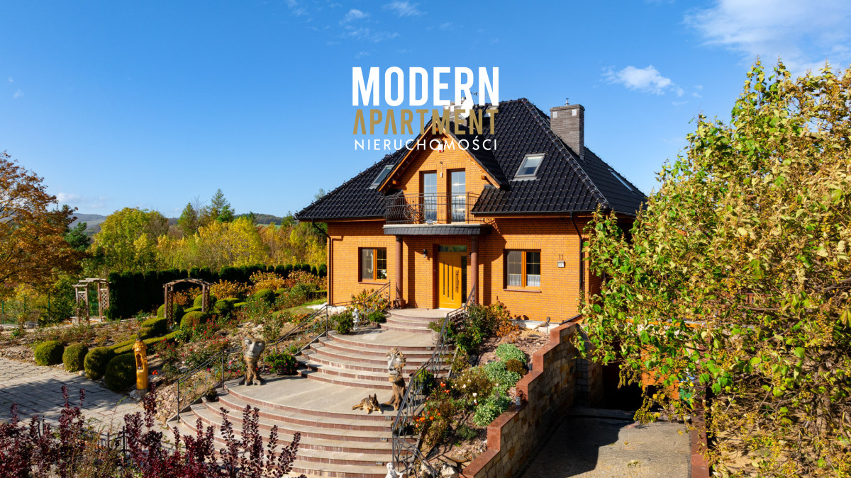 Oferujemy na sprzedaż bezpieczną, energooszczędną willę z dużym, wielopoziomowym ogrodem i panoramicznym widokiem na okoliczne lasy i zamek Bolków.NIERUCHOMOŚĆ:Dom wybudowany w 2010 roku z dużą dbałością o detale i energooszczędność z wykorzystaniem wysokiej klasy materiałów. Na parterze znajduje się przestronny, otwarty salon z kominkiem i wyjściem na słoneczny taras. Dobrze wyposażona kuchnia z wyspą i sprzętem najwyższej klasy, dodatkowo gabinet i łazienka. Na pierwszym piętrze przestronne 3 sypialnie, łazienka i wejście na antresolę. W piwnicy strefa rekreacyjna z barem, garderoba, łazienka, oraz część gospodarcza z garażem, pralnią i niesamowitą spiżarnią wykutą w skale, utrzymującą stałą temperaturę i wilgotność powietrza- miejsce idealne na piwniczkę na wina. Do domu prowadzą duże, reprezentacyjne schody wykonane z płyt granitowych. Na terenie posesji znajduje się garaż wolnostojący 140 m2 z dwoma miejscami postojowymi, kuchnią, łazienką i piętrem do zagospodarowania. Zadaszone miejsce do grillowania z kamiennym, dużym stołem i murowanym grillem. Cały ogród pięknie zaprojektowany i zadbany, z licznymi zakątkami, ścieżkami granitowymi, zarybionym oczkiem wodnym i wydzielonymi strefami - sadem, ogrodem warzywnym, częściami rekreacyjnymi, w tym placem zabaw dla dzieci.