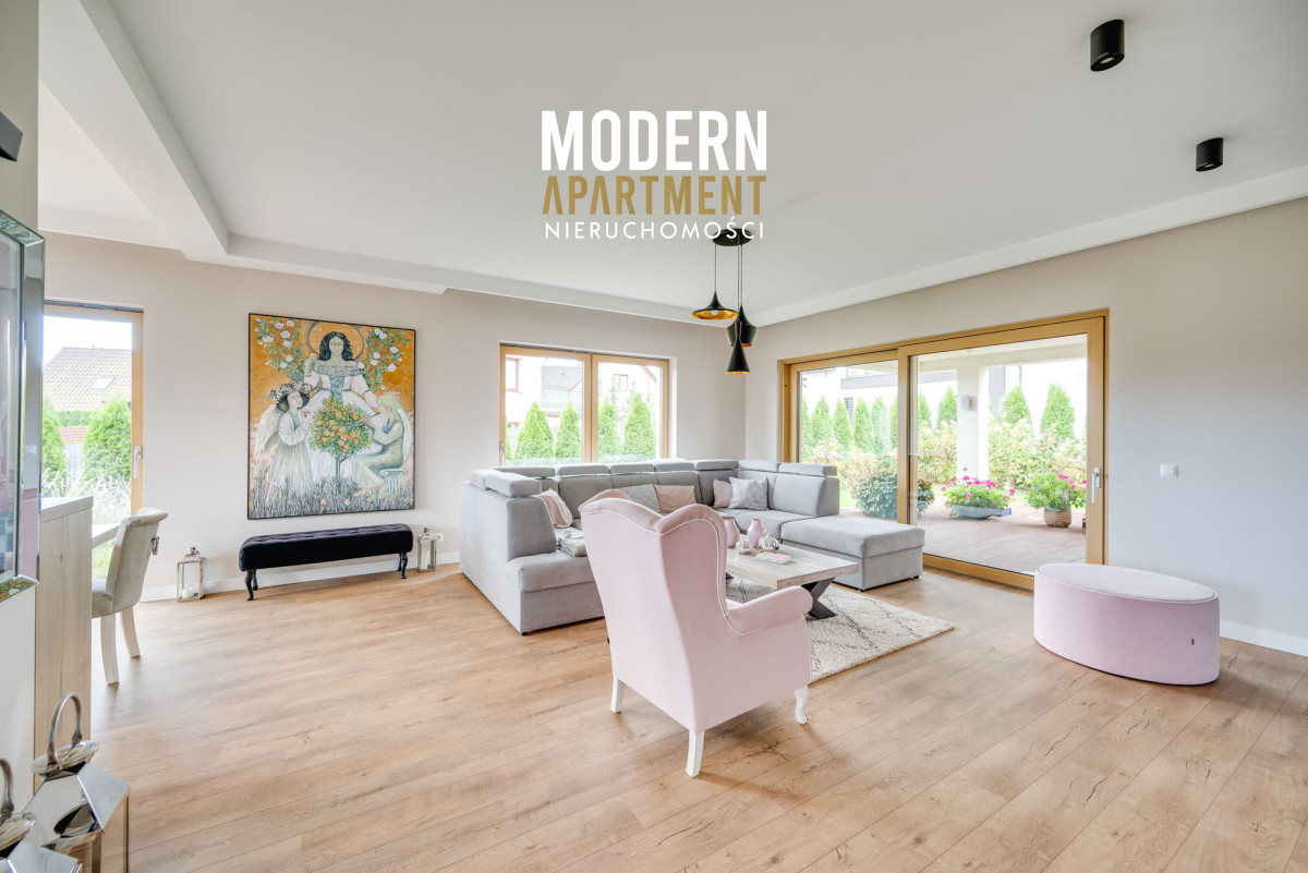 Na sprzedaż nowoczesny i komfortowy dom parterowy w bezpośrednim sąsiedztwie rzeki Raduni, otoczony pięknym ogrodem w doskonałej lokalizacji Gdańsk Juszkowo!DOM:Został wybudowany w 2017 roku. Znajduje się na wzniesieniu nad rzeką Radunia i codziennie mieszkańców wita widok na rzekę i tereny zielone. Dom został zbudowany i jest wykończony w wysokim standardzie. Jest parterowy, bardzo wygodny w codziennym użytkowaniu. Posiada duży, dwu stanowiskowy garaż oraz bardzo przestronne poddasze, które stanowi doskonałą przestrzeń magazynową. Jest otoczony pięknym, zadbanym ogrodem, z tyłu domu znajduje się przestronny, zadaszony taras, który jest wręcz idealny do wypoczynku w ciszy i z dala od codziennego zgiełku. Dom został pokryty dachówką betonową, posiada duże trzyszybowe okna, dzięki którym jest bardzo jasny i ciepły. Posiada klimatyczny kominek, który uprzyjemni każdy wieczór swoim blaskiem i ciepłem. Jest wyposażony w alarm a wszystkie okna posiadają zewnętrzne żaluzje antywłamaniowe.