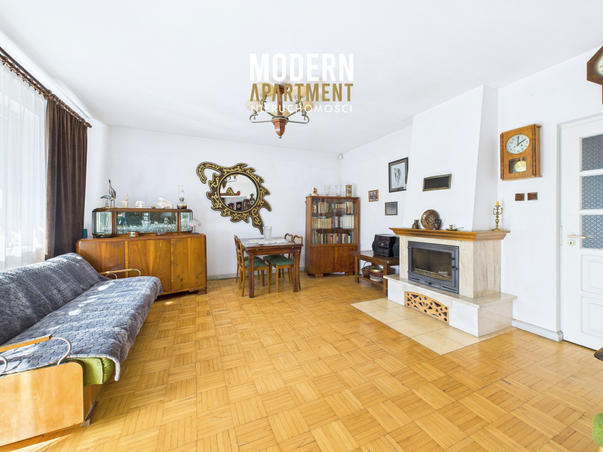 - przestronny salon z klimatycznym kominkiem oraz jadalnią i wyjściem na balkon rozciągający się przez całą szerokość budynku