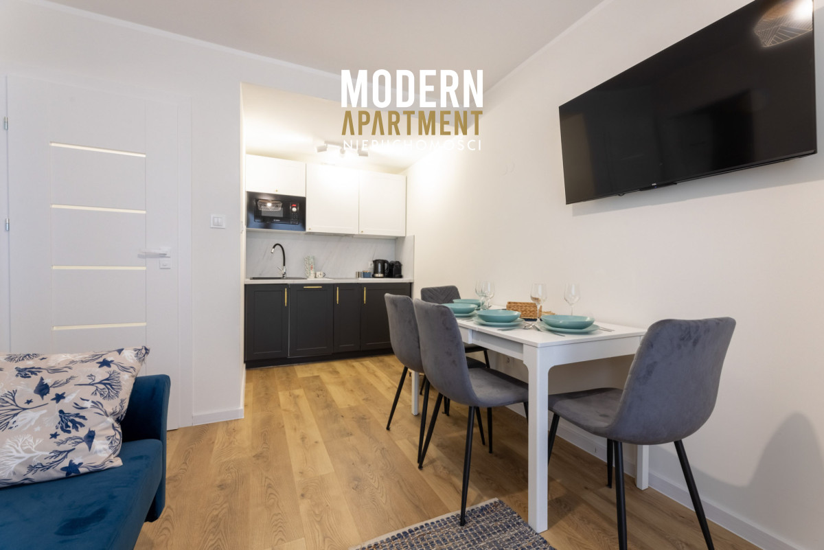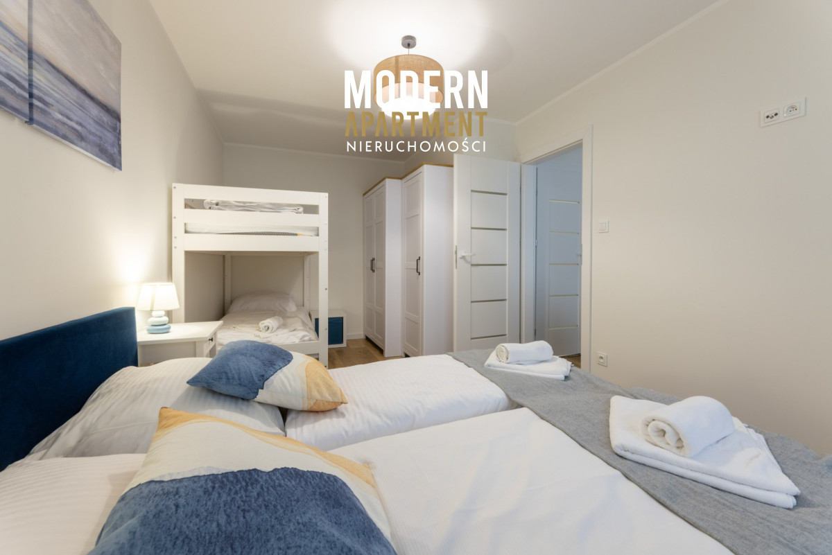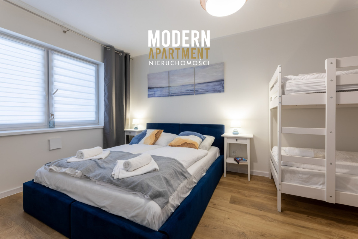 APARTAMENT:Jest zlokalizowany w nowej inwestycji z 2023 roku. 30m2, Jest kompetnie umeblowany i wyposażone, przygotowany do wynajmu lub zamieszkania. Może w nim nocować aż 5 osób (4 osoby w sypialni i 1 w salonie). Posiada również wygodny taras oraz prywatne miejsce parkingowe naziemne (dodatkowo płatne 15 000 zł - zakup obligatoryjny). To idealna lokalizacja dla osób, które szukają cichego miejsca tuż przy plaży, z dala od tłumów turystów a jednocześnie w bardzo malowniczym otoczeniu lasu i klifu. Spacerem do plaży dojdą Państwo w niespełna 10 min. idąc przez piękny las.