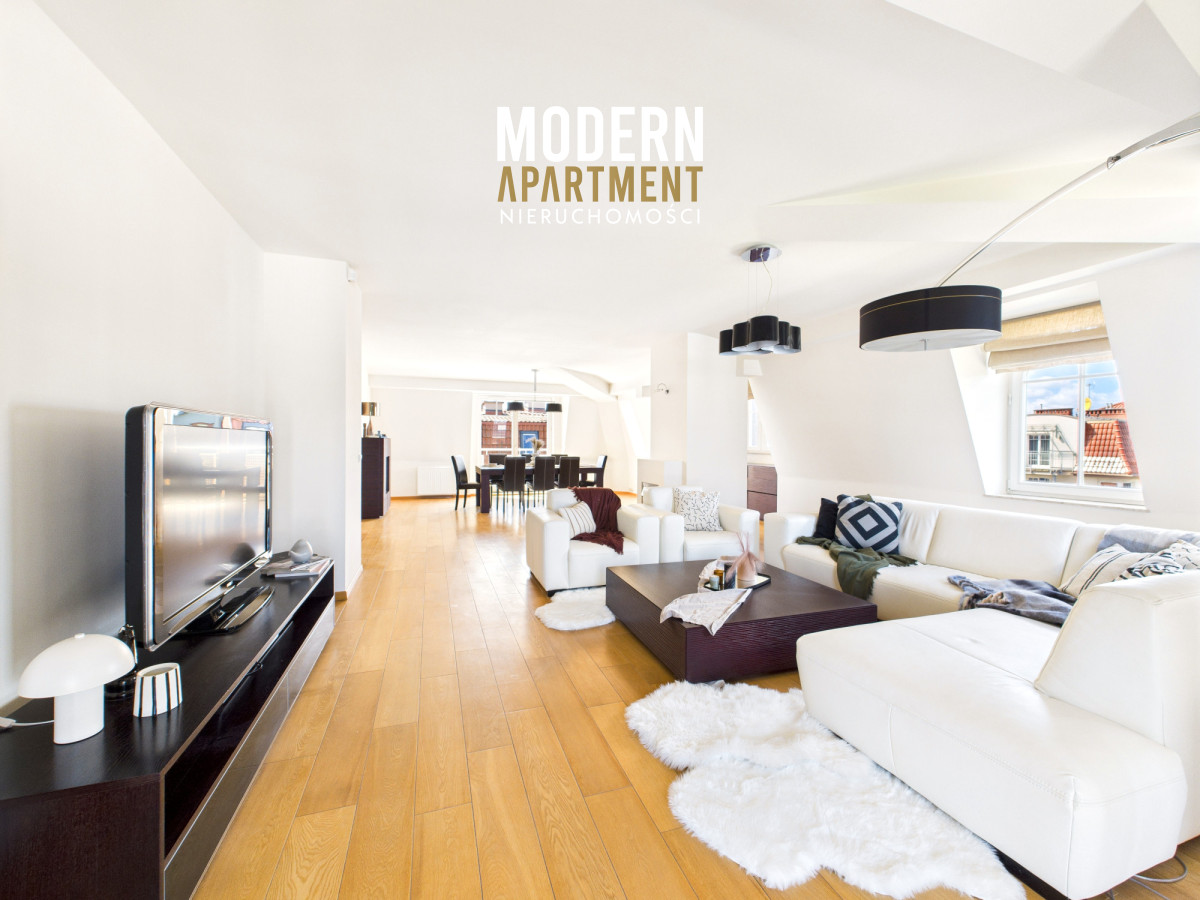 Prezentowany apartament o powierzchni 178 m², zajmuje całe ostatnie piętro prestiżowej inwestycji Kamieniczki Sopockie przy ul. Władysława Łokietka w Sopocie. Najważniejsze atuty to pełna prywatność, niesamowita przestrzeń starannie zaprojektowana, mnóstwo światła dzięki oknom wychodzącym na 3 strony świata oraz piękne widoki dostępne m.in. dzięki 6 balkonom. Apartament jest w całości wyposażony w wysokiej jakości meble oraz sprzęt AGD.