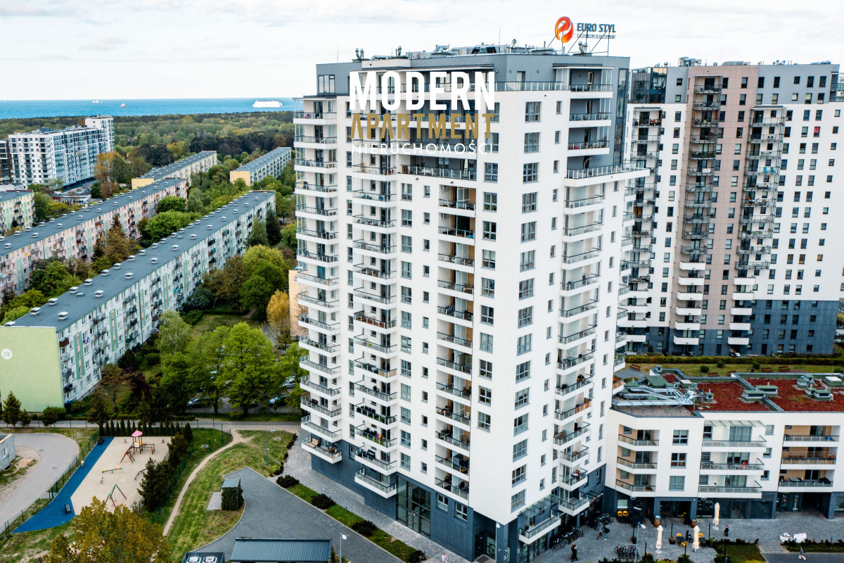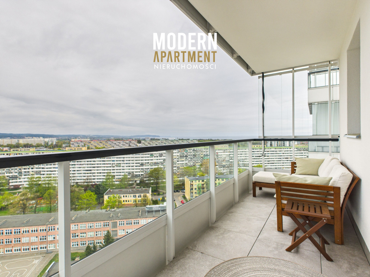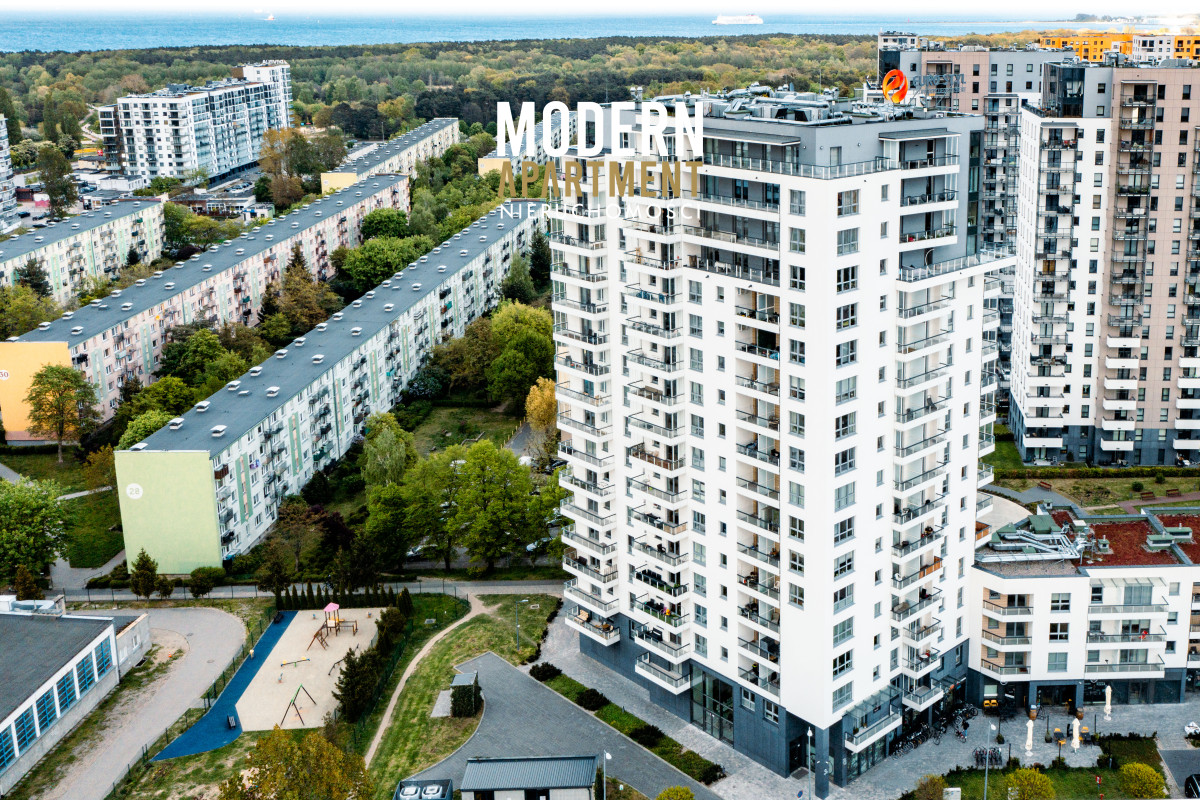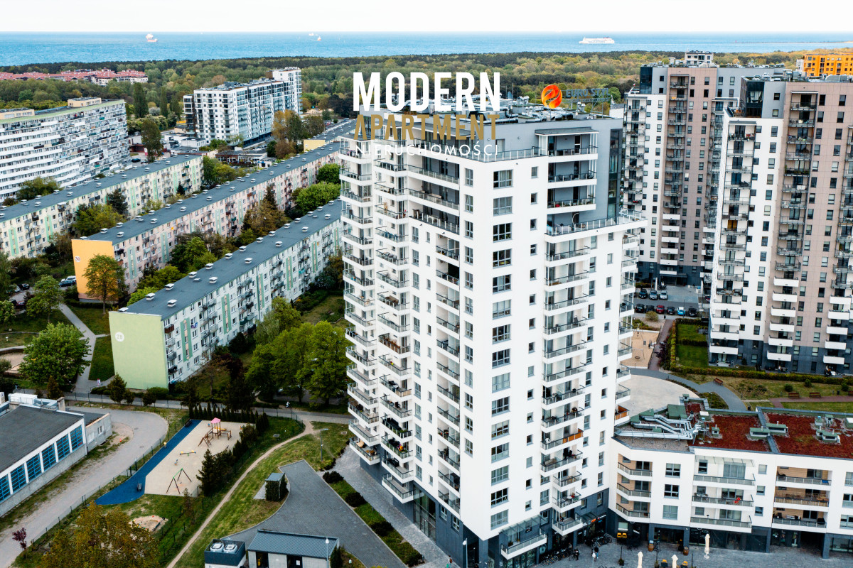 APARTAMENT:Prezentowany apartament o powierzchni 80 m2 zlokalizowany jest na 15 piętrze, rozpościera się z niego piękny panoramiczny widok na Zatokę Gdańską. Apartament jest w pełni umeblowany i wyposażony w niezbędny sprzęt AGD. W apartamencie zostały zamontowane liczne zabudowy oraz szafy wykonane przez stolarza, dzięki czemu przestrzeń została maksymalnie wykorzystana, a przechowywanie wszystkich rzeczy jest bardzo wygodne. Znajduje się w nim również piękna dębowa podłoga. Ekspozycja zachodnia gwarantuje piękne zachody słońca, które można podziwiać z dużego balkonu. Do mieszkania przynależą 2 miejsca parkingowe w hali garażowej oraz komórka lokatorska, znajdująca się bezpośrednio obok miejsc parkingowych (dodatkowo płatne). Inwestycja Spektrum to osiedle wybudowane w 2020 roku, tuż obok Parku Reagana. Inwestycję tworzą 17 - piętrowe budynki. Przy wejściach do budynków zlokalizowana jest recepcja wraz z ochroną, a całe osiedle jest monitorowane, dzięki czemu mieszkańcy mogą czuć się bezpiecznie. Na terenie osiedla znajdują się place zabaw, a także rekreacyjne wiaty do aktywnego spędzania wolnego czasu. Mieszkańcy mają również do dyspozycji rowerownię. Bezpośrednio przy budynku znajduje się pełna infrastruktura handlowo-usługowa.