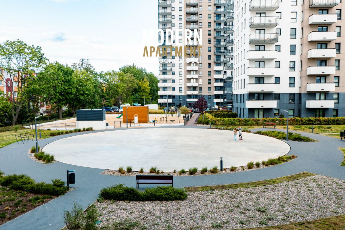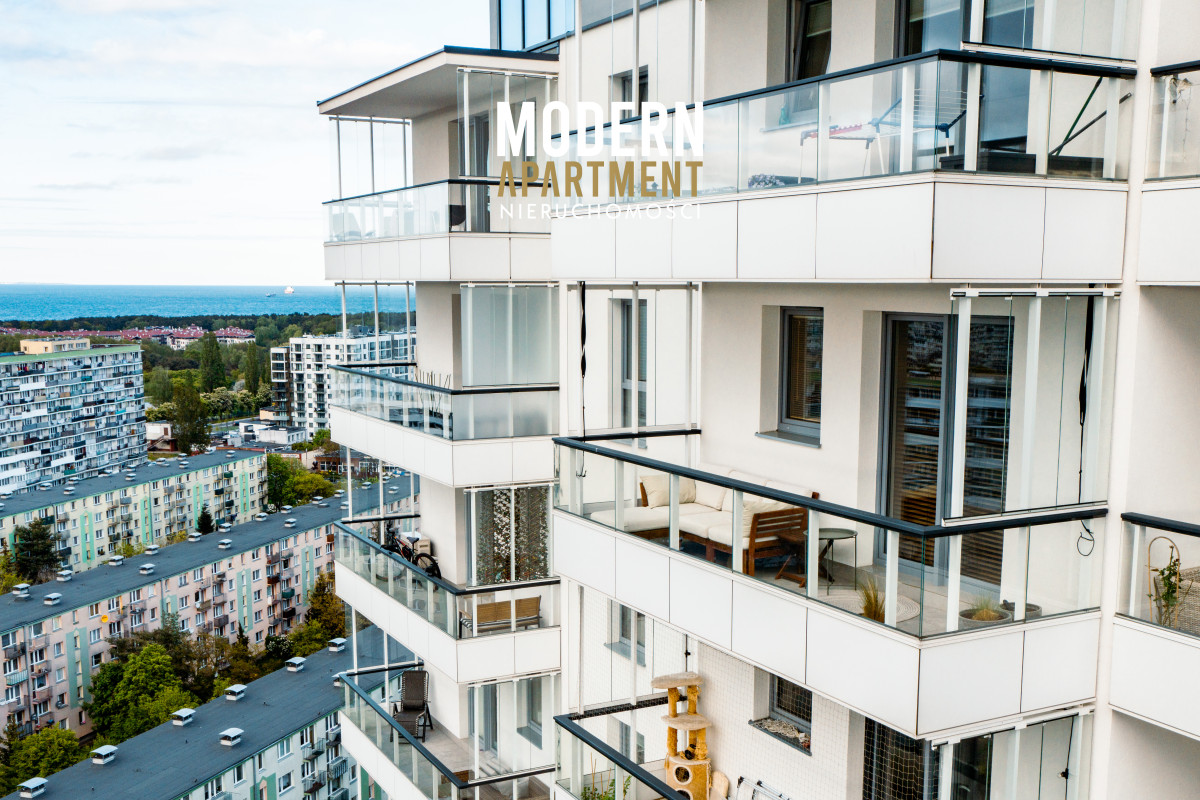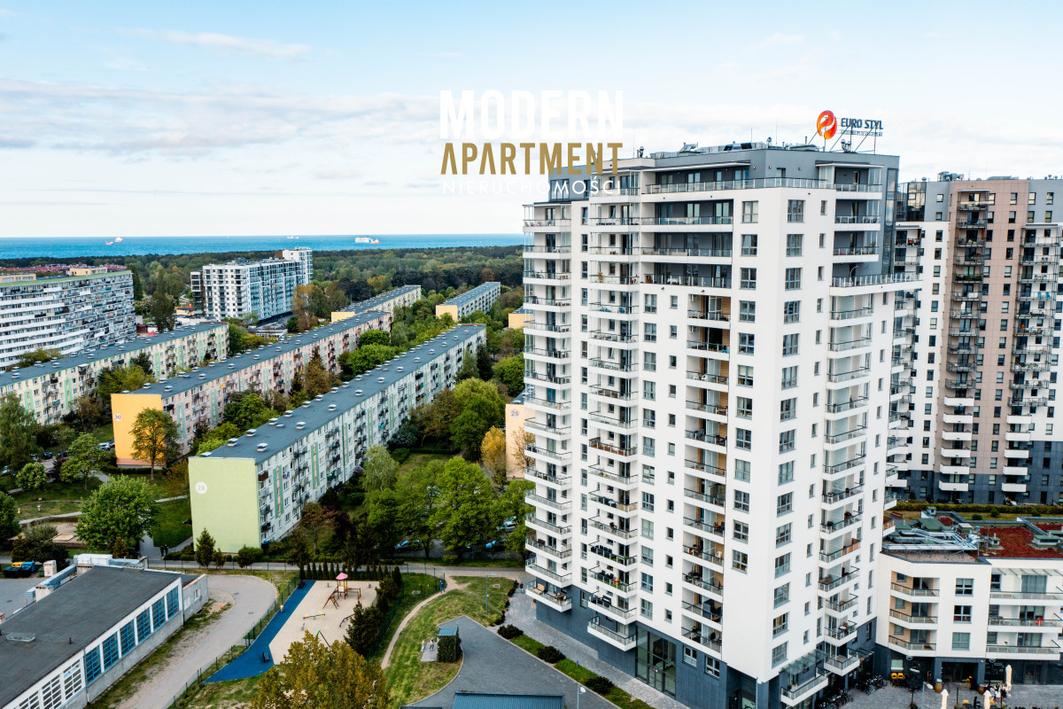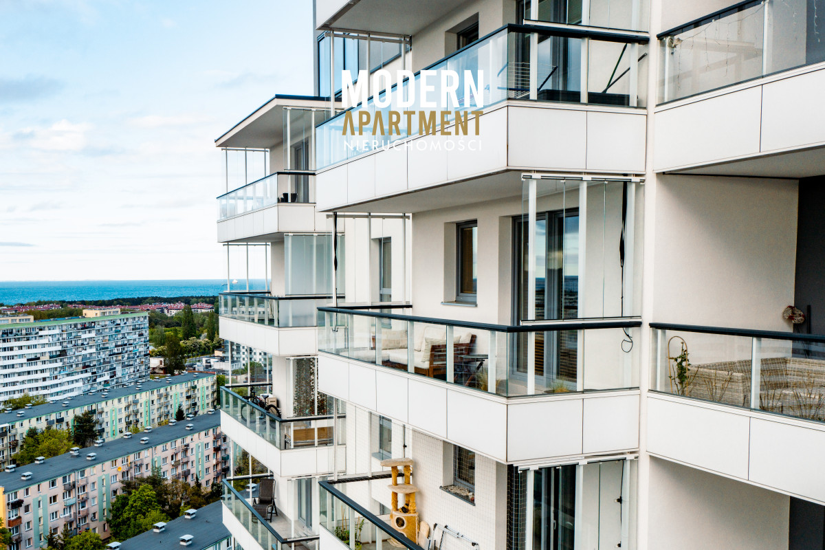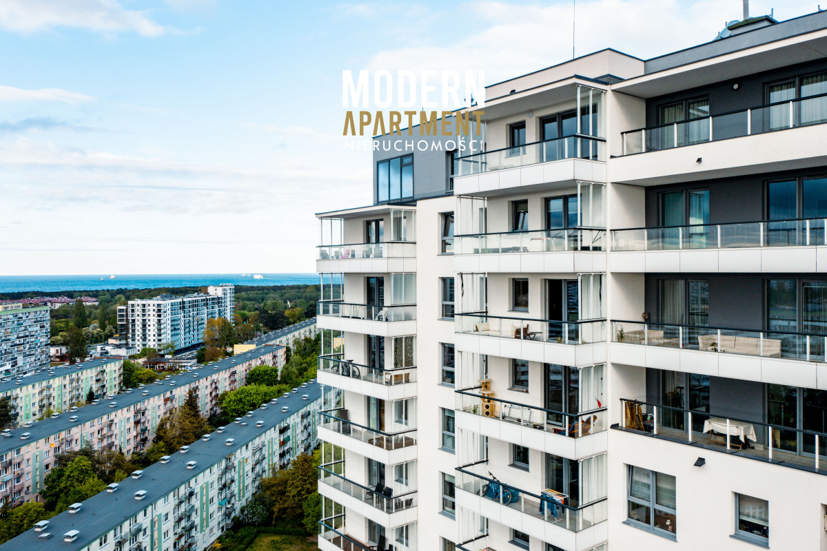 APARTAMENT:Prezentowany apartament o powierzchni 80 m2 zlokalizowany jest na 15 piętrze, rozpościera się z niego piękny panoramiczny widok na Zatokę Gdańską. Apartament jest w pełni umeblowany i wyposażony w niezbędny sprzęt AGD. W apartamencie zostały zamontowane liczne zabudowy oraz szafy wykonane przez stolarza, dzięki czemu przestrzeń została maksymalnie wykorzystana, a przechowywanie wszystkich rzeczy jest bardzo wygodne. Znajduje się w nim również piękna dębowa podłoga. Ekspozycja zachodnia gwarantuje piękne zachody słońca, które można podziwiać z dużego balkonu. Do mieszkania przynależą 2 miejsca parkingowe w hali garażowej oraz komórka lokatorska, znajdująca się bezpośrednio obok miejsc parkingowych (dodatkowo płatne). Inwestycja Spektrum to osiedle wybudowane w 2020 roku, tuż obok Parku Reagana. Inwestycję tworzą 17 - piętrowe budynki. Przy wejściach do budynków zlokalizowana jest recepcja wraz z ochroną, a całe osiedle jest monitorowane, dzięki czemu mieszkańcy mogą czuć się bezpiecznie. Na terenie osiedla znajdują się place zabaw, a także rekreacyjne wiaty do aktywnego spędzania wolnego czasu. Mieszkańcy mają również do dyspozycji rowerownię. Bezpośrednio przy budynku znajduje się pełna infrastruktura handlowo-usługowa.