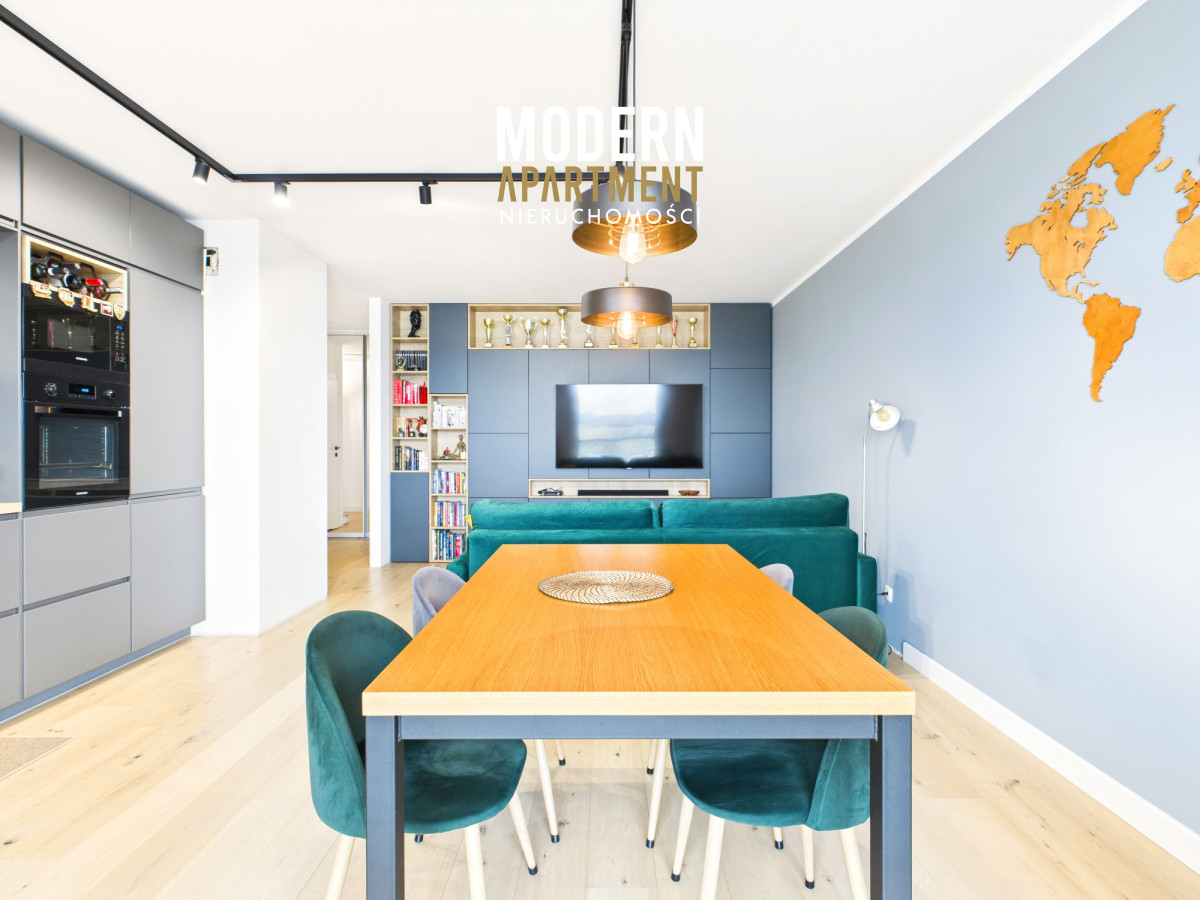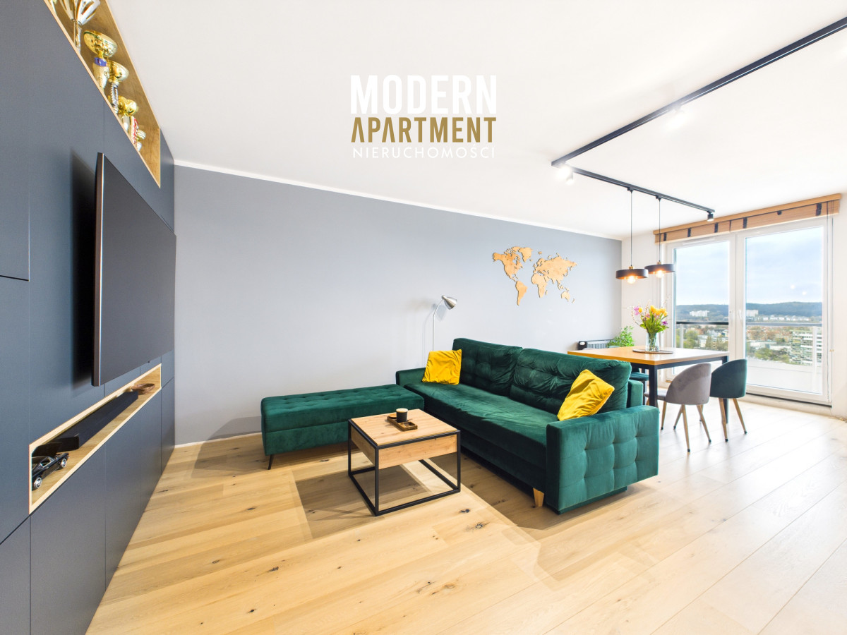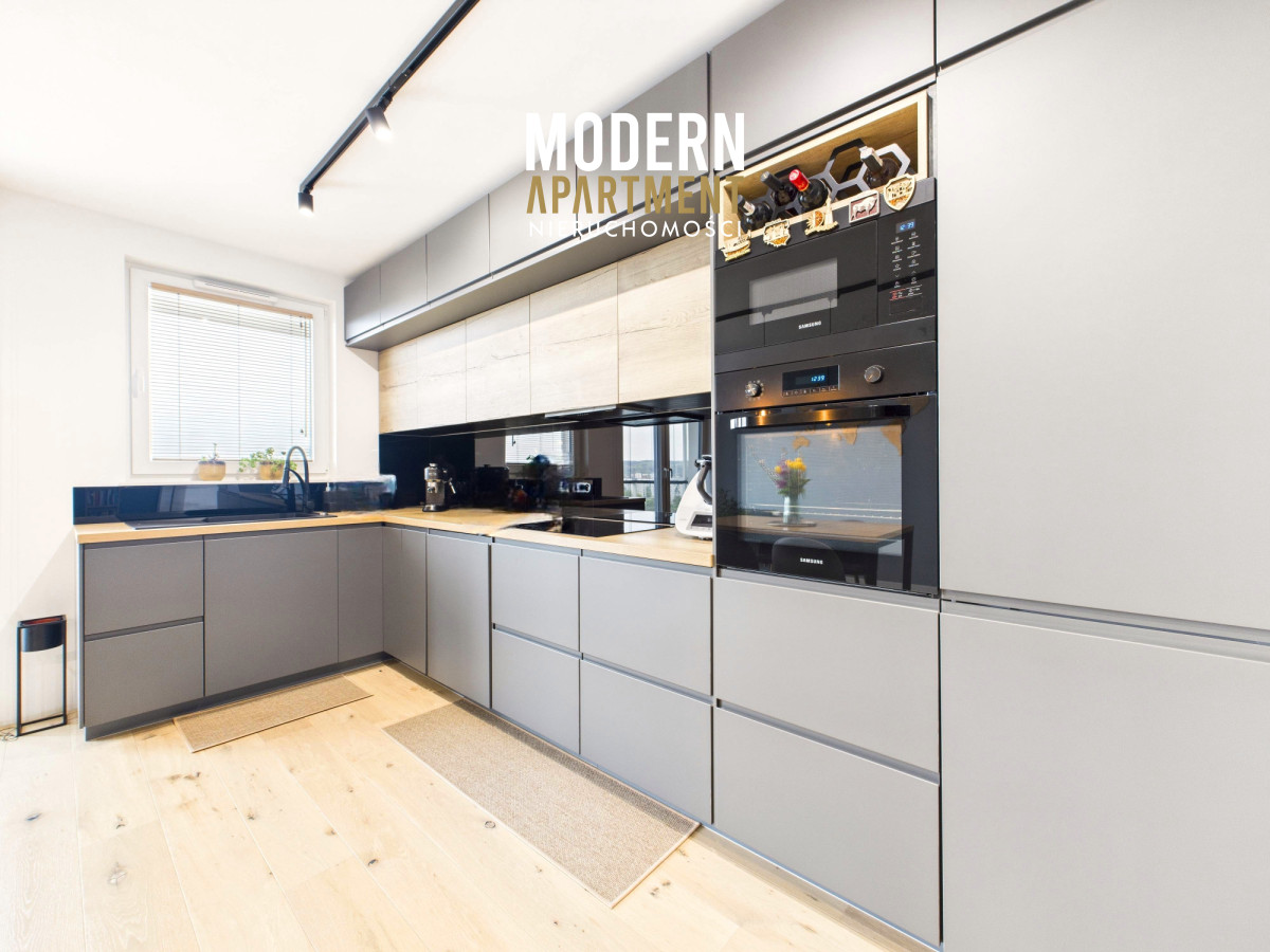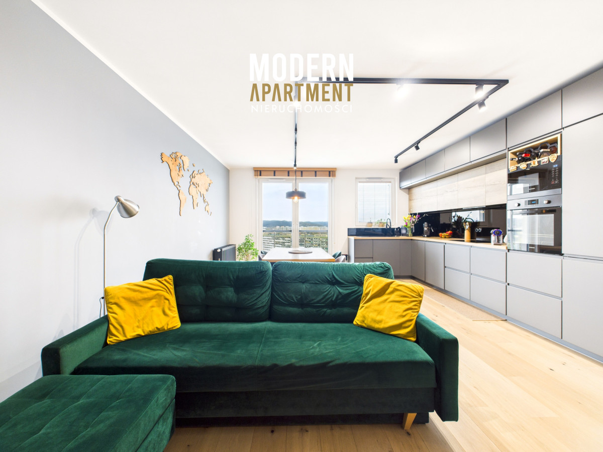 APARTAMENT:Prezentowany apartament o powierzchni 80 m2 zlokalizowany jest na 15 piętrze, rozpościera się z niego piękny panoramiczny widok na Zatokę Gdańską. Apartament jest w pełni umeblowany i wyposażony w niezbędny sprzęt AGD. W apartamencie zostały zamontowane liczne zabudowy oraz szafy wykonane przez stolarza, dzięki czemu przestrzeń została maksymalnie wykorzystana, a przechowywanie wszystkich rzeczy jest bardzo wygodne. Znajduje się w nim również piękna dębowa podłoga. Ekspozycja zachodnia gwarantuje piękne zachody słońca, które można podziwiać z dużego balkonu. Do mieszkania przynależą 2 miejsca parkingowe w hali garażowej oraz komórka lokatorska, znajdująca się bezpośrednio obok miejsc parkingowych (dodatkowo płatne). Inwestycja Spektrum to osiedle wybudowane w 2020 roku, tuż obok Parku Reagana. Inwestycję tworzą 17 - piętrowe budynki. Przy wejściach do budynków zlokalizowana jest recepcja wraz z ochroną, a całe osiedle jest monitorowane, dzięki czemu mieszkańcy mogą czuć się bezpiecznie. Na terenie osiedla znajdują się place zabaw, a także rekreacyjne wiaty do aktywnego spędzania wolnego czasu. Mieszkańcy mają również do dyspozycji rowerownię. Bezpośrednio przy budynku znajduje się pełna infrastruktura handlowo-usługowa.