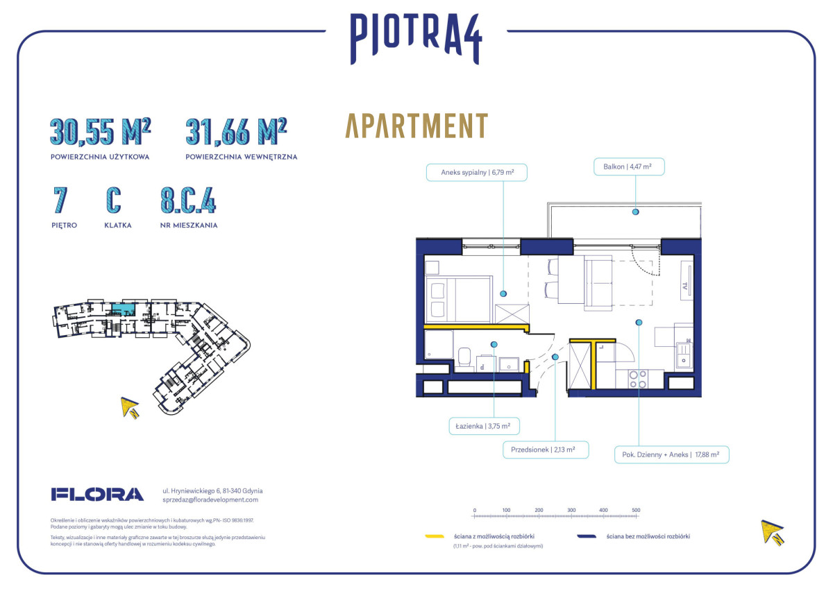 Oferta dostępna tylko w naszym biurze!Mamy przyjemność zaoferować Państwu niepowtarzalny apartament w inwestycji Piotra 4, która powstaje tuż przy gdyńskim nabrzeżu, przy ul. Św. Piotra.APARTAMENT:Prezentowany apartament o metrażu 31m2 jest zlokalizowany na ostatnim, 7 piętrze do strony nabrzeża. Inwestycja Piotra 4 to unikalny projekt nawiązujący architekturą do modernistycznej Gdyni lat 50. Architektura i standard wykończenia odpowiedzą na potrzeby najbardziej wymagających osób, poszukujących wyjątkowego mieszkania w absolutnie wyjątkowym miejscu.Elewacja budynku zostanie wzbogacona o RELIEFY NA FASADZIE.Apartament posiada prywatne miejsce postojowe w hali garażowej oraz komórkę lokatorską, dodatkowo płatne, w cenie 84 000 zł za komplet. Jest sprzedawany w stanie deweloperskim.