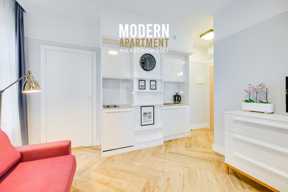 Na sprzedaż unikalny, dwupokojowy apartament typu studio przy ul. Kościuszki w Sopocie! Sprzedaż z 8% vat, podana cena netto.APARTAMENT:W pełni wykończony i umeblowany apartament typu studio w samym sercu Sopotu, przy ul. Kościuszki. Mieści się w kamienicy wybudowanej w 2017 roku i jest gotowy do wynajmu lub zamieszkania. Idealnie sprawdzi się również, jako nadmorski second home. Budynek, w którym znajduje się apartament został wybudowany przez znanego dewelopera Moderna na działce o wielkości 514m2 i obecnie pełni funkcję pensjonatu. Zawiera 5 apartamentów oraz dwa pomieszczenia w przyziemiu, które pełnią funkcję lokali użytkowych (idealne na siłownię, restaurację lub spa dla gości). Prezentowany lokal znajduje się na pierwszym piętrze kamienicy. Do mieszkania przynależy również prywatne miejsce postojowe, dodatkowo płatne 35 000 zł, zlokalizowane bezpośrednio przy wejściu do kamienicy.