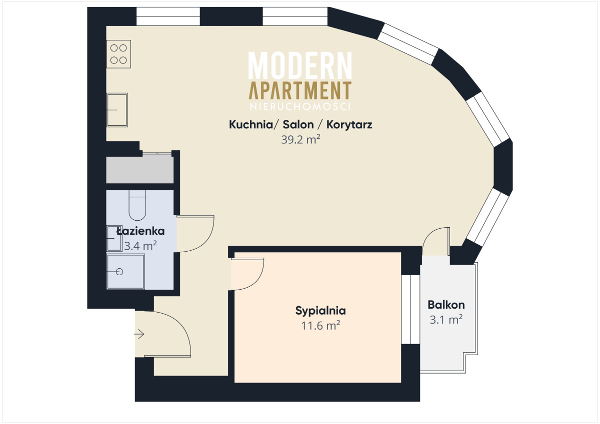 UKŁAD FUNKCJONALNY:Apartament o metrażu 54m2 składa się z: